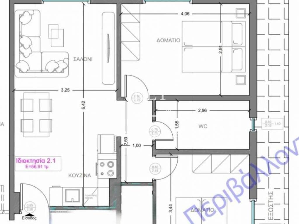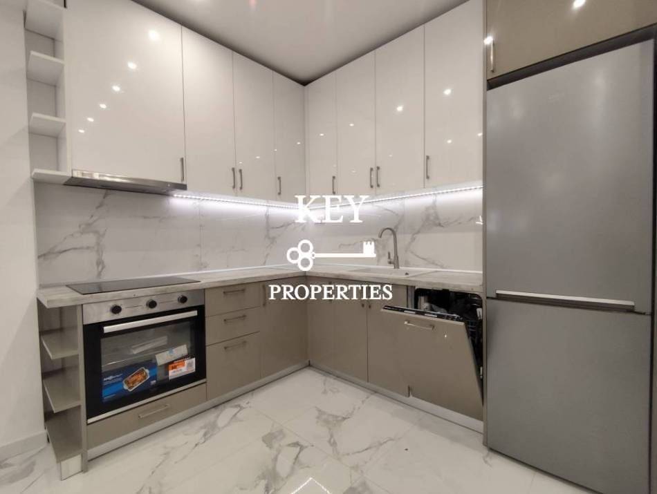 150m. from the metro station, luxury renovated apartment of 57sqm net for sale. Located on the 1st floor with elevator, it consists of two comfortable bedrooms, a bright open plan kitchen with living room and a bathroom. It has electrical appliances, air-conditioning, double-glazed windows with insect screens, an armored door and individual natural gas heating. It is situated in a unique location in the city center, next to bus stops, schools and the market. Materials in some photos correspond to other works of the same manufacturer. The completion of the project is expected in February 2026.