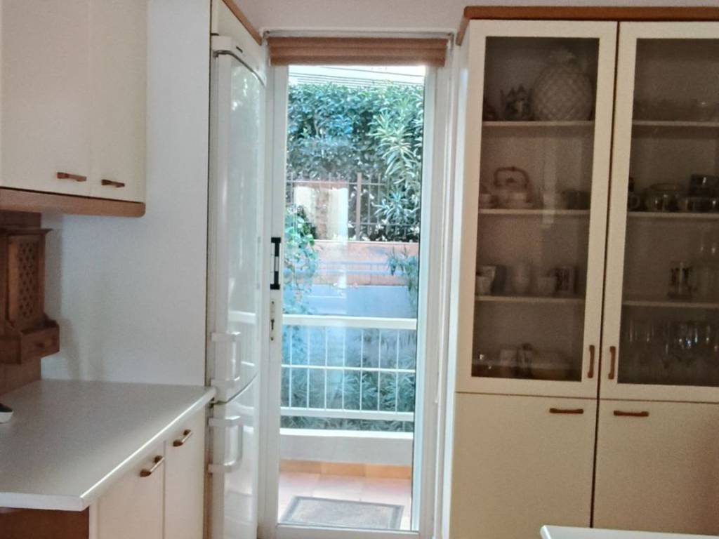 Beautiful and bright 1st Floor apartment for rent, 115 sq m, in a quiet family three-story apartment building in the Kalymniotika area of Voula with a beautiful garden, on the 1st Floor, facing southeast, recently renovated and painted. The apartment has its own parking space with direct access from the garden and an internal storage room - pantry - 2 sq m, two bedrooms and an office (which can be converted into a bedroom), a WC, a large en-suite bathroom, a large and bright kitchen and a living room with a fireplace, that extends over two levels . It also has large openings with a view of the open space and each space opens onto a balcony. The large - ensuite bathroom has recently been renovated, painted and maintenance work has been carried out such as sanding - polishing the wooden floors in the bedrooms - the remaining spaces are covered with tiles. The garden of the apartment building is shared and there is a barbeque and a built-in oven at the back that can be used by the tenants. The apartment building is in very good condition and is carefully maintained by the owners. It is ideal for families or couples. Pets are not allowed Contact the owner at 6941559777 No brokers