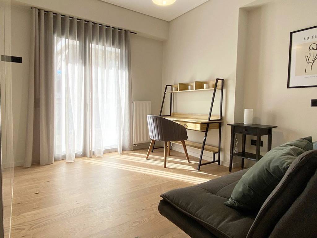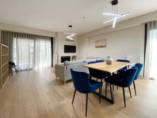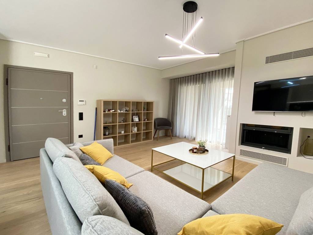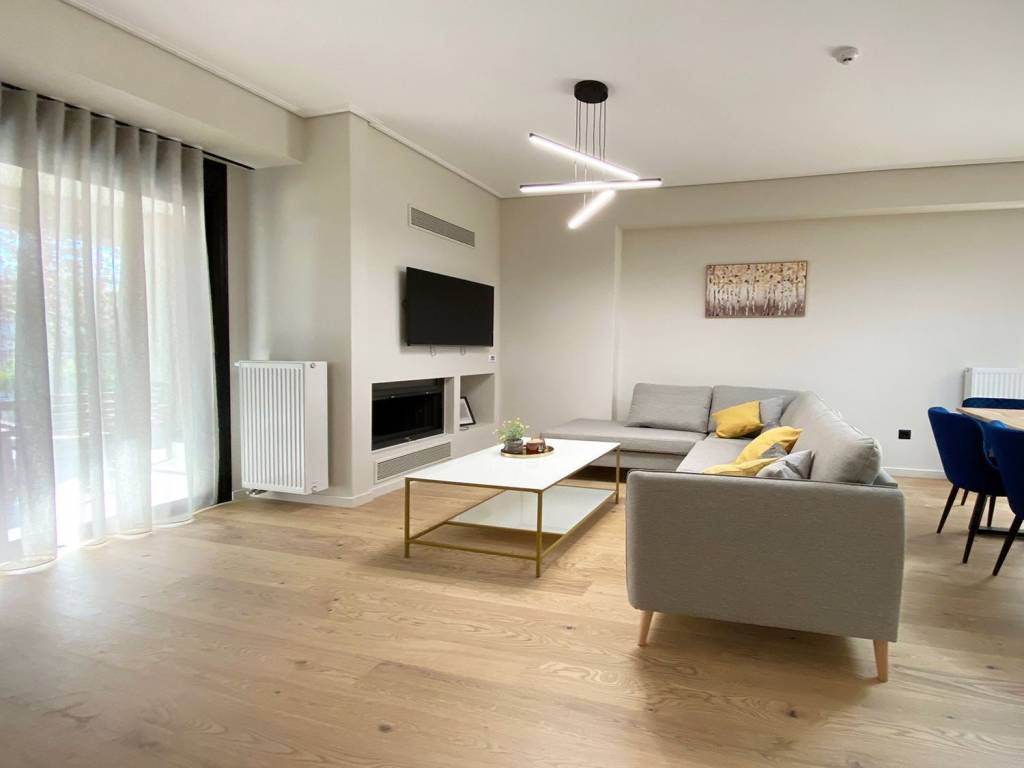 Newly built, luxury minimal-style apartment in an excellent and very quiet location in Chalandri, within close proximity to Chalandri Ravine, the city center, Attiki Odos and Dourou Central Square. The apartment measures 110 sq.m., is located on the 1st floor of a five-storey building with a garden, and offers abundant natural light and spacious interiors. Property Features 3 bedrooms 2 bathrooms Open-plan living room & dining area Large front veranda with open view Spacious rear balconies with view Storage room of 12 sq.m. 1 parking space in pilotis 1 parking space in closed garage Amenities & Comfort Autonomous heating with natural gas Energy-efficient fireplace Air conditioning units Alarm system Fully furnished & fully equipped Apartment Equipment (D2) 1 double bed with vanity table & mirror 1 single bed with desk & bookcase 1 sofa-bed with desk Living room with library & dining area 50” Smart Full HD TV Fridge-freezer Electric cooker Built-in dishwasher Washing machine & dryer Bed linen, blankets & towels Iron & ironing board Full kitchenware & cookware Small appliances: vacuum cleaner, kettle, coffee machine, toaster, hair dryer, telephone, blender Additional Information The apartments are self-serviced and do not include consumables (cleaning products, paper goods), which are the responsibility of the tenant. Excellent condition – ideal for high-standard residential or corporate use.