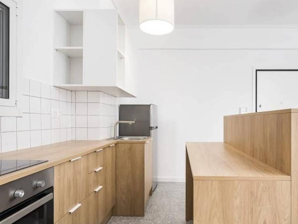 Kallithea, Apartment,, Rental, 70 sq.m, year built 1980, renovated in 2023, 2 rooms, 1st, Availability: Available, Heating: Air-condition, Condition: axcellent condition, Renovated, very good condition, Floor type: Tiles, wooden floor, Window frames: Aluminum, Energy class: F, Position: Frontal, Includes: Awnings, Elevator, near isap, near urban, public transport, Security door, Suitable for: Students, Characteristics: balcony, bathroom with window, Bright, built in closets, close to public transport, Electrical devices, Furnished, painted, Pets allowed, small pets. property ID: 3020