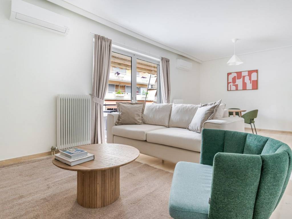 Discover the best of Athens, with this two bedroom apartment in Palaio Faliro. It’ll be easy to simply show up and start living in this fashionably furnished apartment with its fully equipped kitchen, spacious living room, and our dedicated, on-the-ground support. (ID #ATH2215)