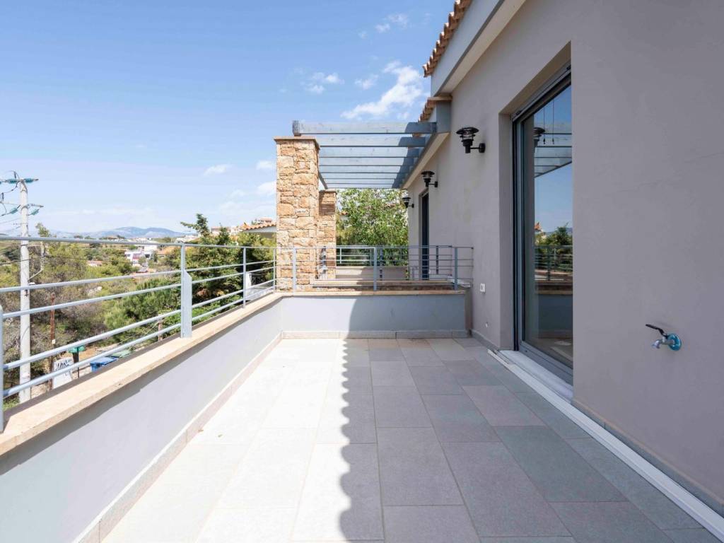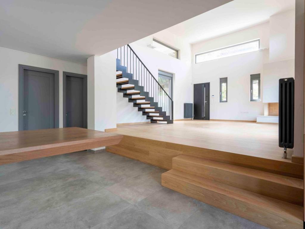 Welcome to a truly unique single-family residence of high standards, where contemporary luxury meets distinctive architecture and an exceptional sense of comfort. From the very first entrance, the eye is drawn to the impressive double-height living room, featuring elegant oak flooring and large floor-to-ceiling windows that flood the space with natural light. A few steps below, the modern kitchen stands out for its functionality and refined aesthetics, fully equipped with an oven, cooktop, and dishwasher, while the guest WC is conveniently located right next to it. On a slightly elevated level, the mezzanine offers a flexible space that can be adapted to individual needs—whether as a second lounge, a library, or a home office. On the upper floor, there are two comfortable and bright bedrooms sharing a modern bathroom, as well as a spacious master bedroom. All areas enjoy direct access to balconies with open and pleasant views. The basement accommodates a generous three-car garage along with a storage room, fully covering the practical needs of a modern home. Built in 2020 with top-quality materials and contemporary specifications, the residence features oil heating with independent control per floor, an elevator, fireplace, energy-efficient double-glazed windows with insect screens, and an alarm system. Its location is exceptionally privileged, within short distance of Nea Penteli Square, offering easy access to shops, restaurants, and public transportation—providing an ideal balance between quality living and everyday convenience. A residence that truly stands out—an ideal choice for those seeking comfort, refined aesthetics, and a high standard of living. Nestled in the exclusive enclave of Nea Penteli, this luxurious property is ideal for discerning buyers seeking a blend of serene living and vibrant city access. Nea Penteli, known for its affluent ambiance, offers an idyllic retreat for families and professionals who value privacy without compromising on convenience. The area boasts exceptional infrastructure, with well-maintained roads and reliable public transportation. The Athens city center is a mere 25-minute drive away, while the Eleftherios Venizelos Airport is accessible within 30 minutes, ensuring seamless travel connections. For leisure, residents can indulge in a plethora of activities, from hiking the scenic trails of Penteli Mountain to exploring the cultural treasures of nearby historic sites. The vibrant local dining scene and boutique shopping options add to the area's charm, offering both local and international delights. This location is further distinguished by its panoramic views and lush landscapes, providing a tranquil setting that captivates the senses. Discover the essence of luxury living in Nea Penteli, where sophistication meets natural beauty, creating an unparalleled lifestyle opportunity.