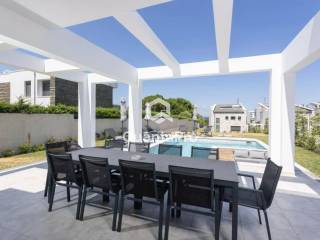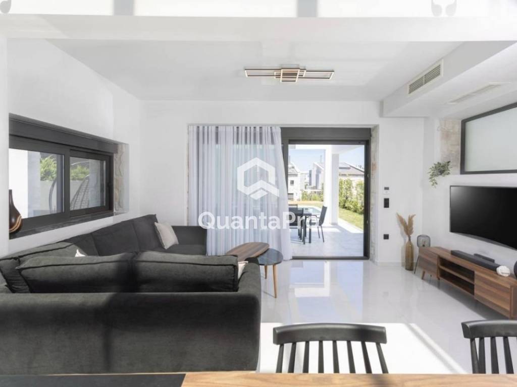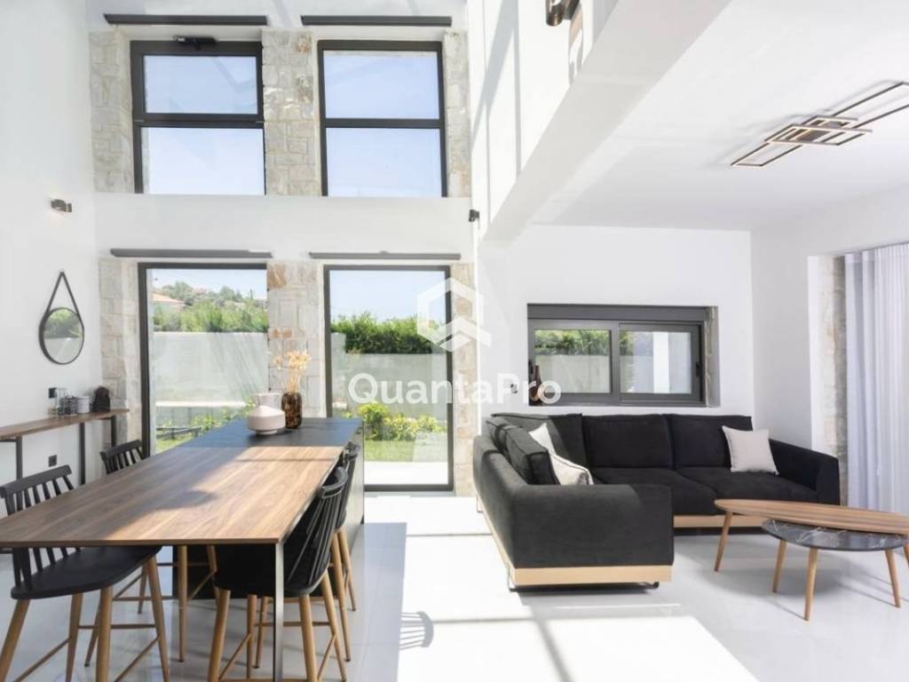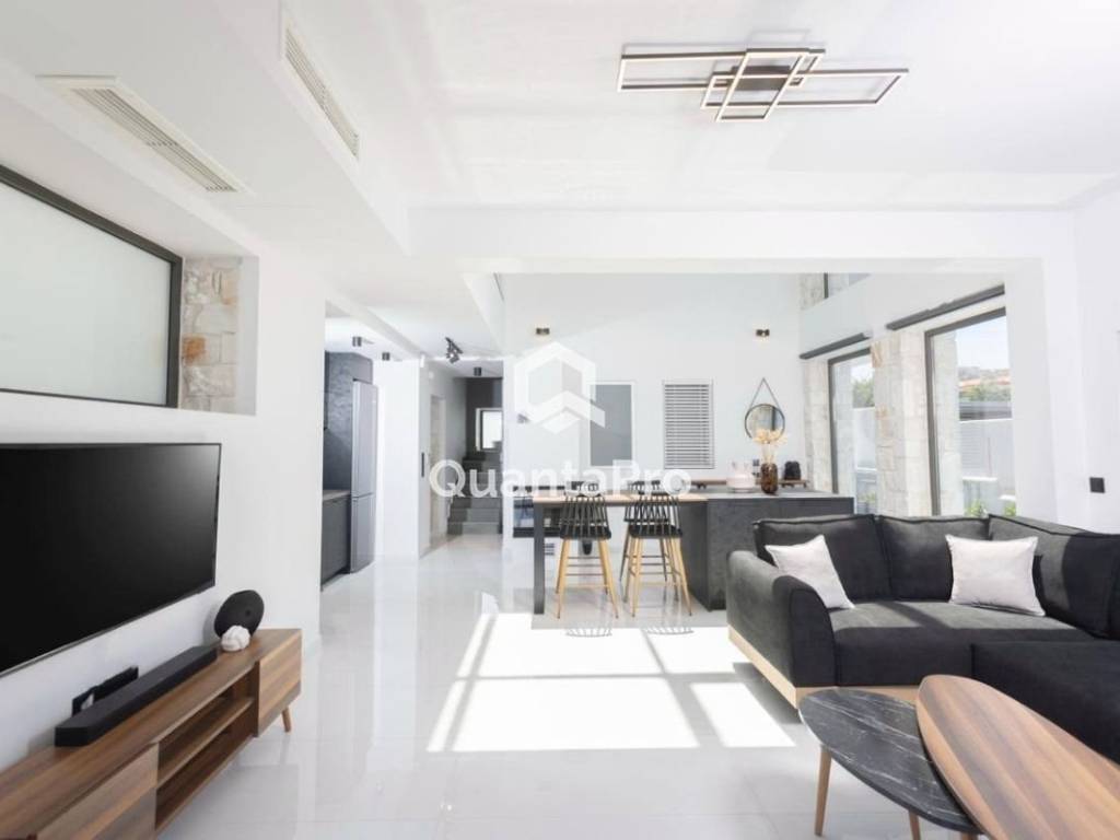 Property Code: 3-1033 - Villa FOR SALE in Pallini Chaniotis for € 800.000 . This 220.00 sq. m. furnished Villa consists of 3 levels and features 5 Bedrooms, an open-plan kitchen/living room, 2 bathrooms and a WC. The property also boasts Heating system: Heat pump, tiled floor, view of the Sea, Window frames: Synthetic, Armourplated door, garden, swimming pool, A/C, pre-installation for A/C, alarm system, double-glazed windows, BBQ, playroom, dressing room, satellite dish, CCTV cameras, internal staircase. The building was constructed in 2023 . Building Energy Rating: A