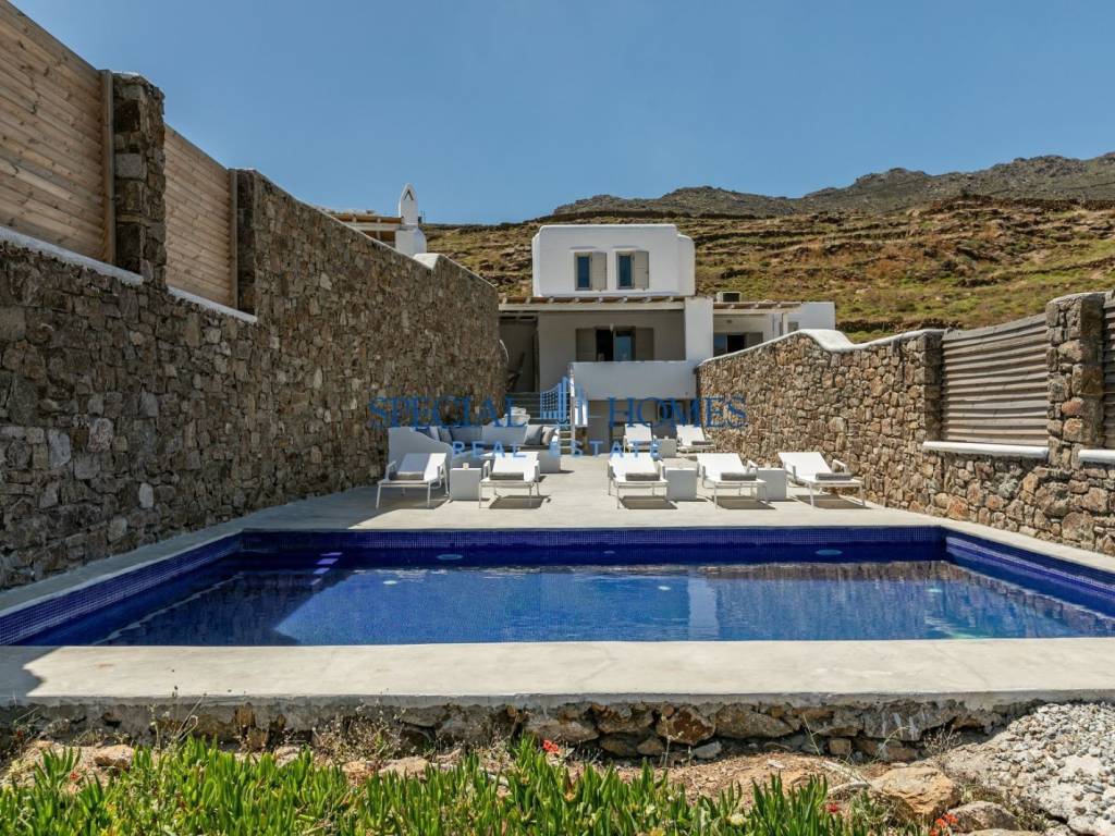 Villa For sale, floor: Ground floor, in Mykonos - Panormos. The Villa is 202 sq.m.. It consists of: 4 bedrooms, 4 bathrooms, 1 kitchens, 1 living rooms and it also has 1 parkings (1 Open). The property was built in 2019. Its heating is Autonomous with Electricity, Air conditioning, Solar water system are also available, it has Alluminum frames with Double glazed windows, the energy certificate is: E. The property's status is: New development, Excellent condition, it is close to Transportation, it has Panoramic view. The Villa is Bright, Airy, Sunny, Luxury, it is suitable for Holiday home, Internal staircase, Swimming pool. Price: €1.500.000. Special Homes Real Estate, contact phone: 2103004142, email: info@specialhomes.gr, website: https://www.specialhomes.gr