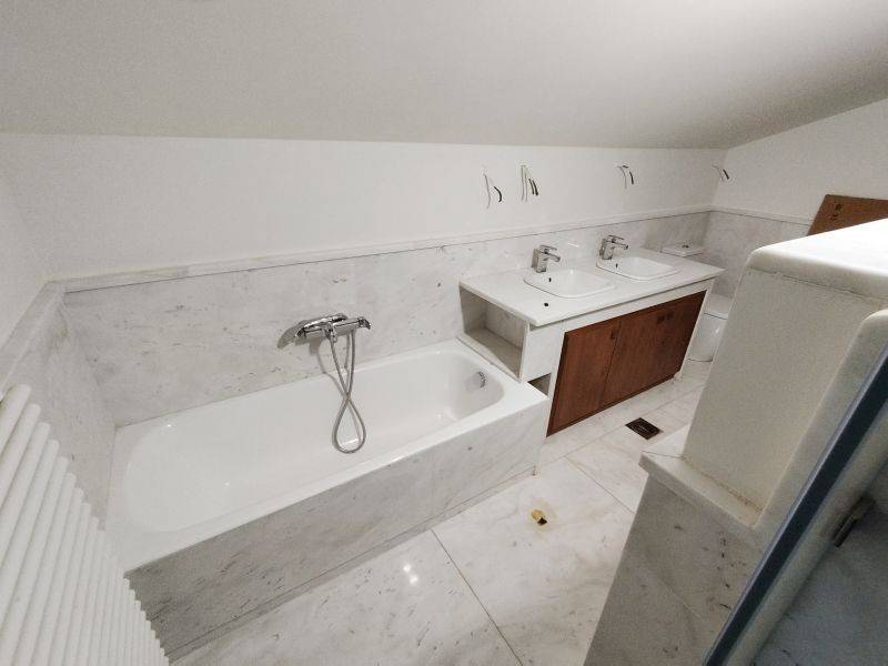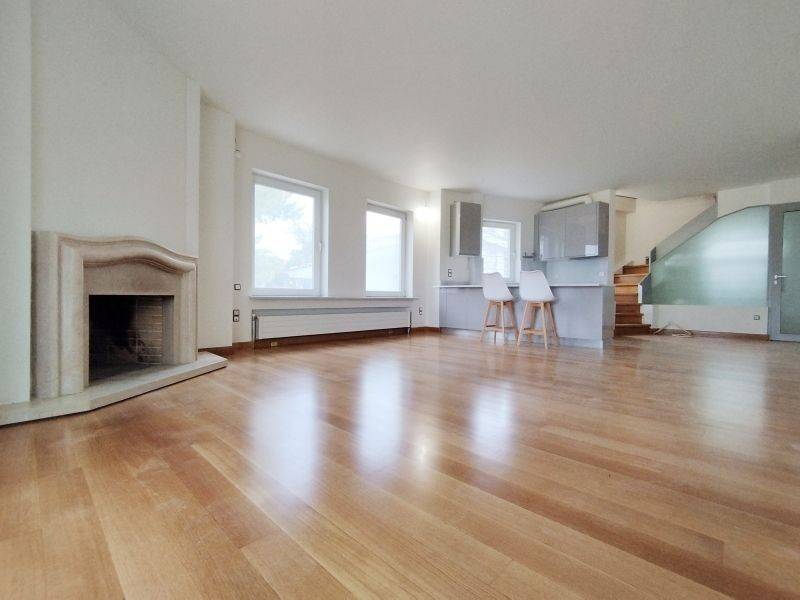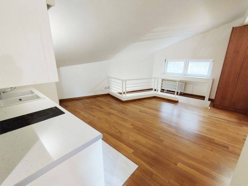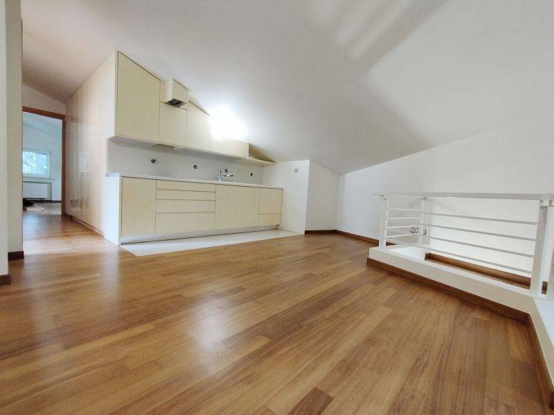 This is a duplex apartment in a duplex building with a first floor and a high-ceilinged attic.