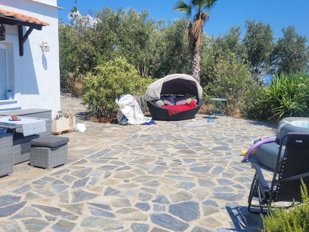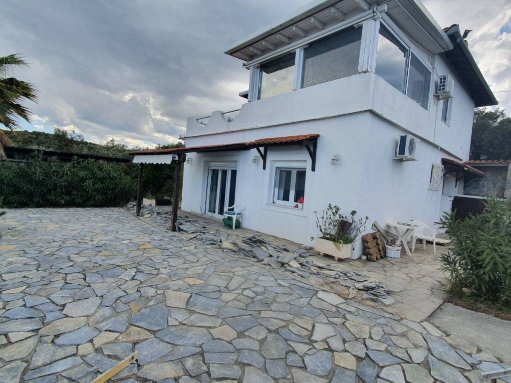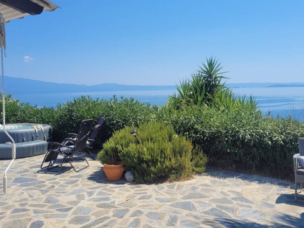 .This beautiful house is situated on a hill at the edge of Amaliapoli, offering a unique view of the entire Pelion peninsula. There are three houses in total, with very friendly neighbors. It is easily accessible, has a carport and barrier-free access to both apartments.