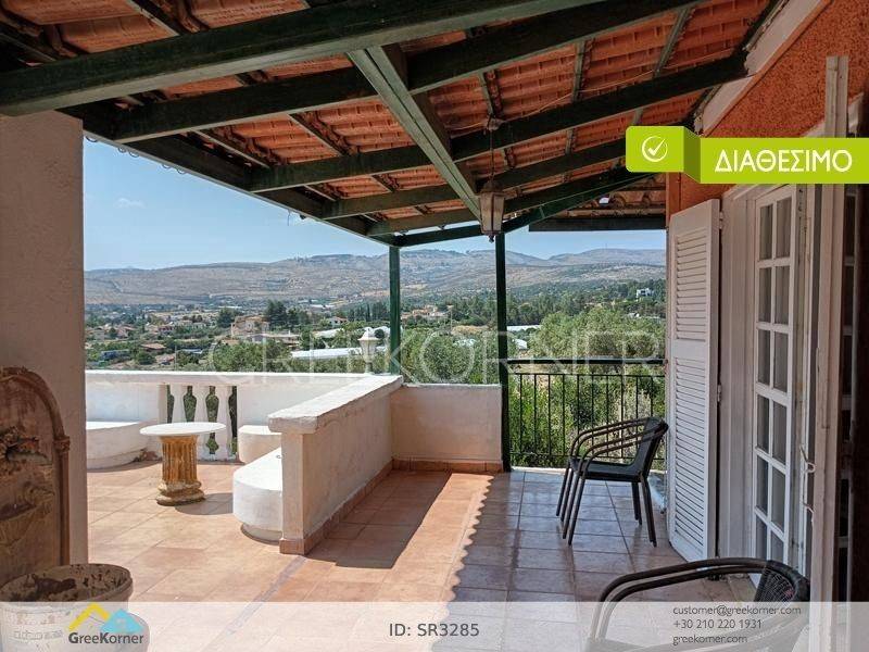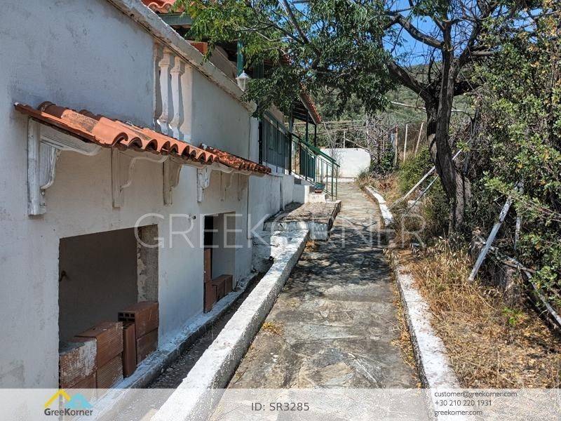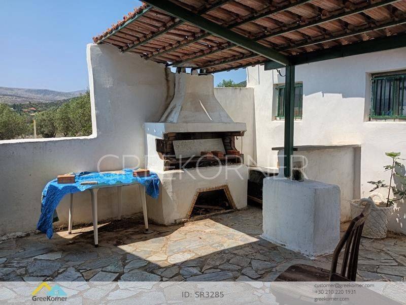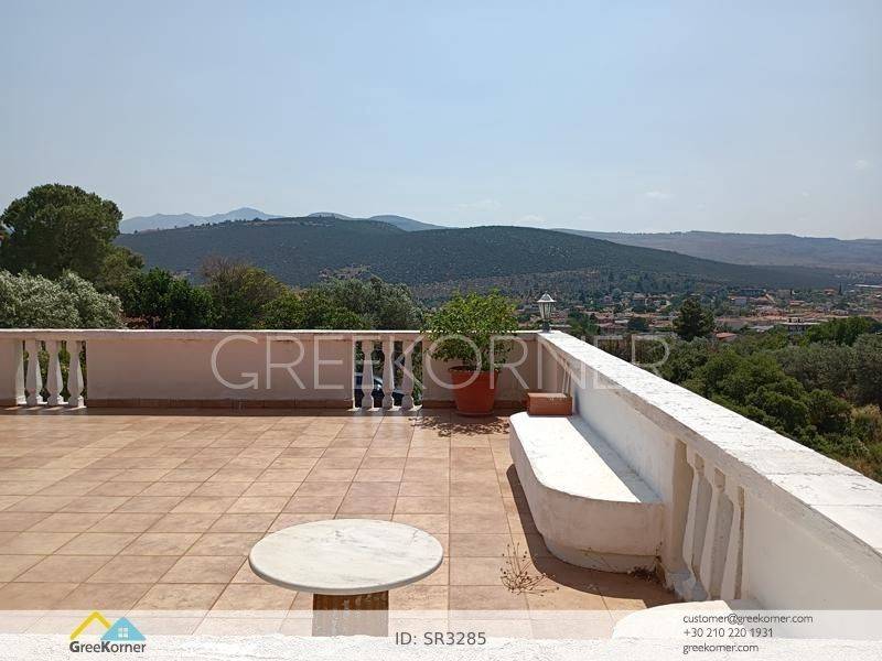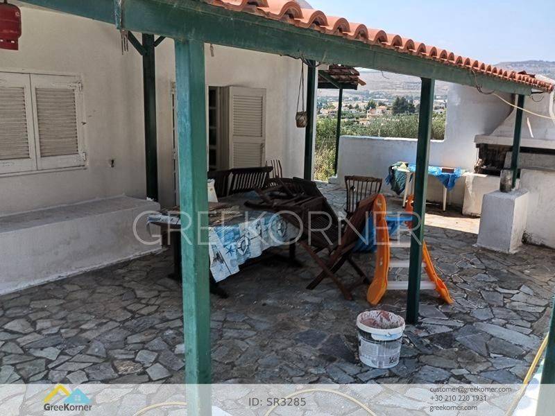Marathonas - Detached House 67sqm plot 2050sqm, bedrooms 2, levels 2, ground floor (66sqm, 1 bedrooms, living room, kitchen, bathroom) - 1st (67sqm, 2 bedrooms, living room, kitchen, bathroom), good condition, year built 1989, energy class G, living room, kitchen, bathroom, heating type: no heating (air condition), parking open space,3+, quiet, dual aspect apartment, luminous, unobstructed view, frontage, storage space 10sqm, fireplace, balconies, large balconies, balcony 135sqm, garden, garden 2050sqm, wooden frames, without common charges, pets allowed, residential zone, north-eastern orientation, access from dirt road.