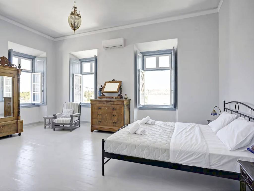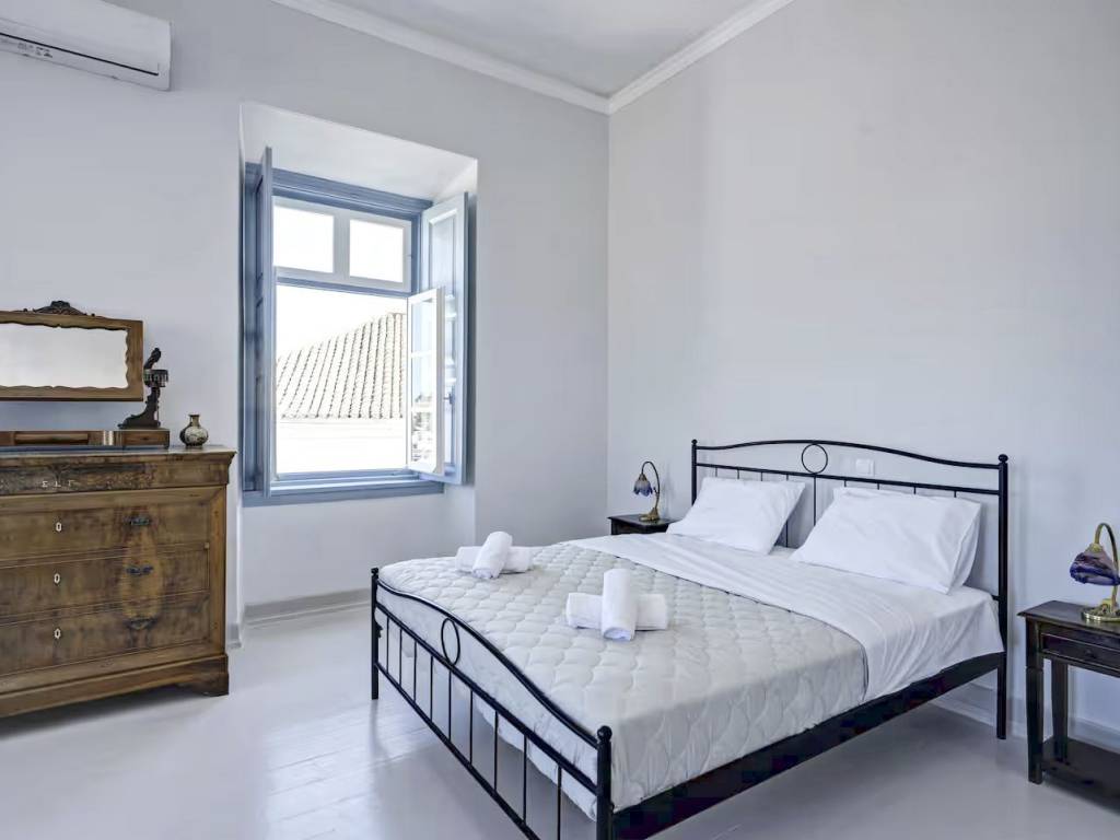 Exceptional Apartment in a Mansion with Views over the Old Harbor An exceptional apartment is offered for sale within an impressive historic mansion, in a prime location overlooking the Old Harbor. This unique, fully renovated property combines the authentic architecture of a neoclassical mansion with the timeless elegance that characterizes the island’s grand old captains’ houses. High ceilings, large openings, and abundant natural light highlight the apartment’s character, creating an atmosphere of aristocratic refinement and understated luxury. This is not simply an apartment, but part of a remarkable landmark building. The unobstructed views of the Old Harbor and the sea are a rare privilege, while the location offers immediate access to restaurants, cafés, shops, and points of cultural interest. The renovated apartment spans approx. 200 sq.m. and occupies the top floor of a three-story mansion, offering a distinct sense of privacy and comfortable living. The recent renovation has respected the building’s original character, seamlessly blending traditional architecture with modern amenities. The property comprises four spacious bedrooms, along with generous and light-filled reception areas, featuring large openings that allow natural light to flow throughout the apartment. The elevated position and top-floor location ensure breathtaking views and a feeling of openness and horizon. An ideal choice either as a high-end holiday residence or as an investment property, in one of the most sought-after and consistently valuable areas of Spetses.