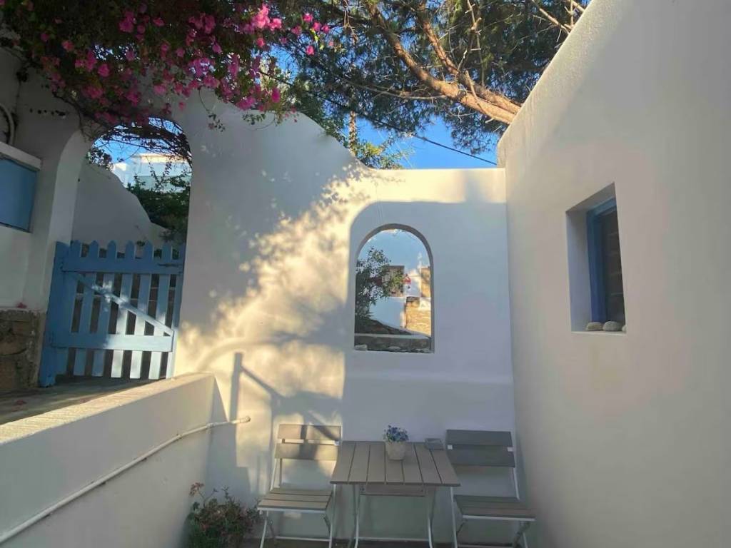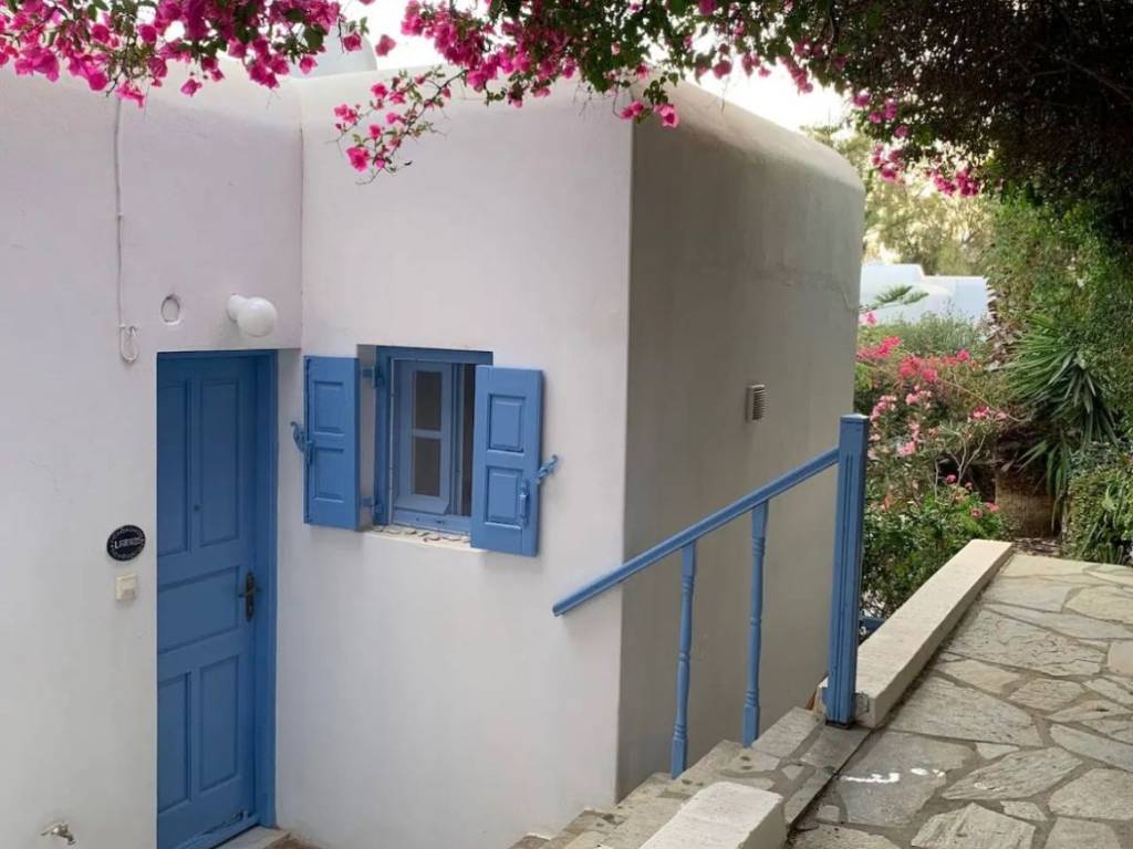 Summer House in Myconos Agios Ioannis, 45sqm 1 bedroom, bathroom,full equipped kitchen, living room with a bed sofa air conditions ,2 balconies, garden and a parking area. Sea in a walking distance. Bus station , mini market, restaurants. Quiet and friendly neighborhood. For 2 months July -August 10.000€