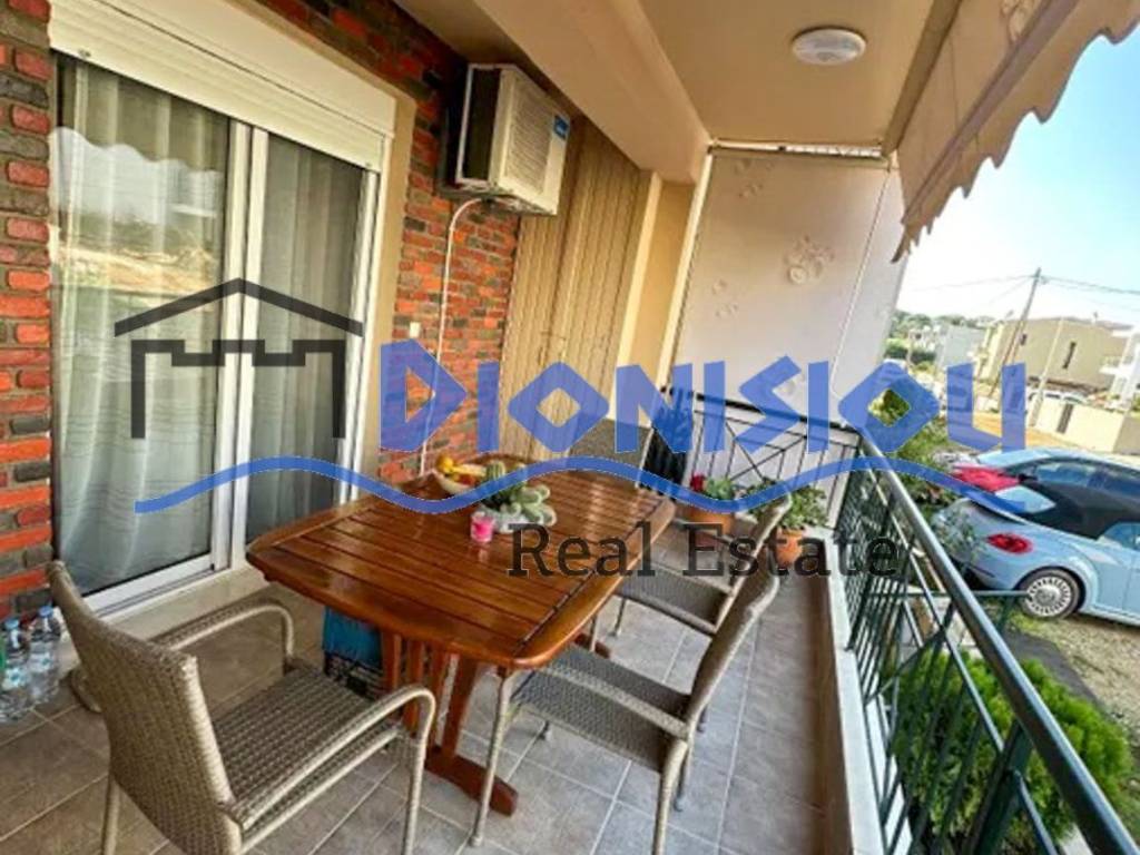 The apartment is located in the complex in Nea Fokea village 600 meters from the nice sandy beach. There is a communial garden with a BBQ. The apartment is located on the 1st floor and consists of a living room with a kitchen, 2 bedrooms, a bathroom and 2 balconies one of which with a sea view. The apartment is for sale with furniture. Aircondition, security door, sunshade tents, individual heating system (diesel), solar heating system, a storage room, parking. ID property: 2351 Dionisiou Real Estate 63200 Dionisiou Beach, Halkidiki Τ. +30 23730 23717 +30 6949487210 +306959591225 email: dionisiourealestate@gmail.com www.dionisiou-realestate.com www.dionisiou-realestate.ru The exact point on the map does not correspond to the actual address of the property Caution ! For the indication of the property it is necessary to show your ID and your Tax number according to Law 4072 / 11-4-2012 Government Sales Law 86A.