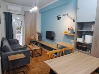 Renovated in 2024, building 1967 I think, this stylish and cozy apartment offers a blend of modern design and comfort with meticulous attention to detail. The 47 sqm of internal space on the 1st floor plus 2 sqm of storage with secure door, includes a 4 sqm balcony with a view of a lush backyard, perfect for every stay. It is conveniently located steps away from Fokionos Negri pedestrian street and from Patission Street with few steps to buses and taxis and 7 minutes to upcoming metro station in Kypselli square, heading to various locations. The neighborhood is filled with supermarkets, bakeries, banks, pharmacies, cafes, Nightlife, and restaurants….. Additionally, it is just a very short walk from Fokionos pedestrian street & Agiou Georgiou square. The unit is currently rented for 580 euros a month until September 2026; the rent will undoubtedly be increased to reflect the 2026 rent level. High-end brand furniture is used to furnish the interior. The space includes a living room with a dining table for four persons, a Samsung Smart TV, and a designated space for luggage and handbags. The bedroom has a hidden closet, a queen-size bed, and a single bed that can sleep up to three people. The modern bathroom features a shower with ample hot water and Rocca/Grohe fixtures. The fully equipped kitchen includes a Liebherr fridge/freezer, Morris stove, …. etc. and Samsung washing machine. In addition, there is a spacious living area with a desk that can serve as a workspace, a balcony equipped with a washing rack and tent. The apartment is fortified with a secure entrance door, iron secure balcony doors, double-glazing, window shutters, and curtains on windows, ensuring a restful night's sleep. Triple “A” inverter air conditioning is available in both the living room and bedroom. Should you need any last-minute groceries, a convenient mini market is located downstairs and remains open after usual shop hours.