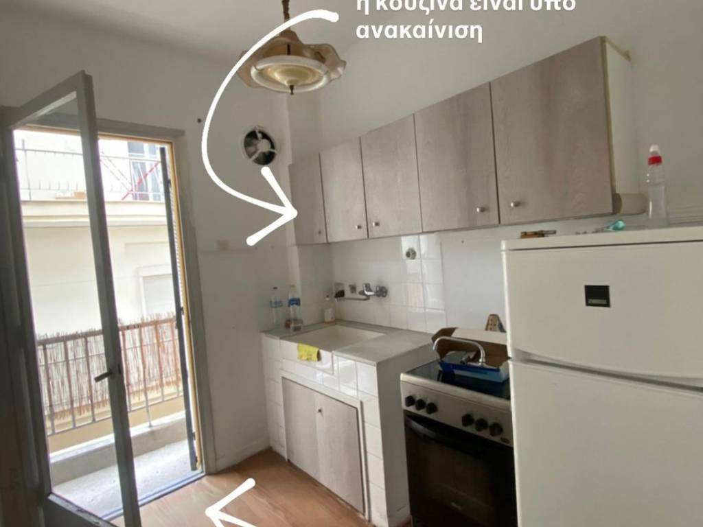 Apartment of 55.00sq.m., 1st floor, with elevator, bright, located in a neighborhood with abundant greenery, next to Hippokration Hospital, close to a metro station, and between the bus stops: Kyveleia, Efkleidis, Theagenio, Hippokration. I am initially attaching the 3D renderings of the design study in order to clearly present the spatial layout and the exact configuration of the property, as it is currently undergoing a full renovation and the photographs uploaded were taken at different times. All elements of the apartment are being renovated. The apartment consists of: an entrance hall, a built-in entrance unit (2.10*0.30*h.2.90 m), bathroom, Space 1 (parquet flooring, suitable as either a bedroom or living room), Space 2 (parquet flooring, bedroom), fully equipped kitchen. Balcony of 8.50m. in length. New awnings, two new air conditioners, new water heater, etc. As the property is under renovation, any preferences or suggestions of a prospective buyer can be taken into consideration during construction. Otherwise, it will be delivered fully renovated by mid-February.