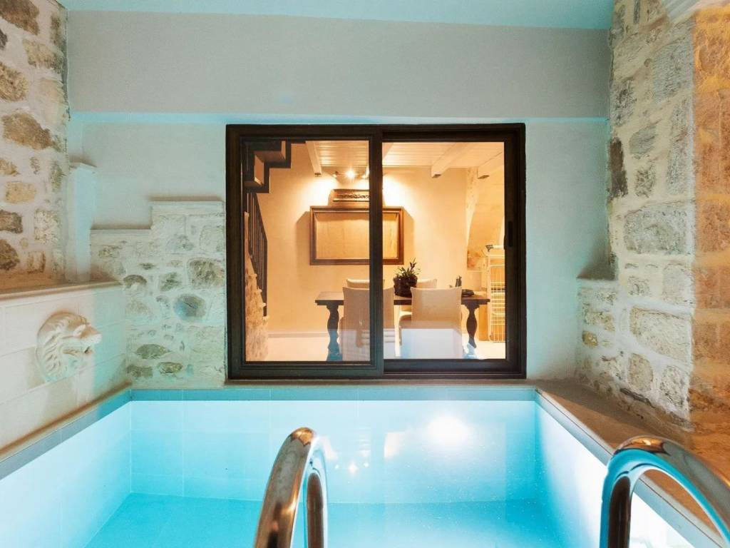17th-Century Stone Villa for sale in Rethymno, Crete, Maroulas Set within the enchanting hilltop village of Maroulas, just 7 km from the town of Rethymno, this rare 17th-century listed residence is a remarkable fusion of historic authenticity and discreet modern luxury. Originally dating back to the Venetian occupation and officially listed by the Greek Archaeological Authority, the property has been fully renovated to high standards, preserving its architectural heritage while delivering contemporary comfort. Property Overview Type: Listed stone-built maisonette Total Interior Area: approx.141 sq.m. Plot Size: approx. 200 sq.m. Levels: 2 + attic Bedrooms: 3 Bathrooms: 2 Capacity: Up to 5 guests Condition: Fully renovated Status: Historically protected / listed property Interior Layout Ground Floor Open-plan living and dining area Fully equipped kitchen One bedroom with twin beds One bathroom Upper Floor Master bedroom with en-suite bathroom Private balcony with panoramic village, sea, and mountain views Attic Additional bedroom with single bed, ideal for a fifth guest The interiors combine traditional stone architecture with refined finishes, offering air conditioning, satellite TV in all rooms, and high-speed Wi-Fi throughout. Outdoor Living & Amenities The outdoor area is designed for absolute privacy and relaxation, offering breathtaking panoramic views over the Cretan landscape. Key features include: Private plunge swimming pool 5-seater outdoor jacuzzi Stone-built BBQ with pergola-covered dining area Shaded veranda with lounge seating and direct pool access Multiple furnished relaxation areas Fully fenced outdoor space with private gated entrance Terrace storage room Historical Significance This residence is a true Venetian gem, once serving as the country house of a Turkish-Cretan Aga in the 19th century. Its preserved character, combined with modern upgrades, makes it a one-of-a-kind heritage property on the island of Crete. Location Highlights Traditional hilltop village setting 7 km from Rethymno town & beaches Easy access to shops, tavernas, and amenities Ideal balance of privacy, culture, and accessibility Ideal For Heritage property collectors Luxury holiday home buyers High-end short-term rental investment