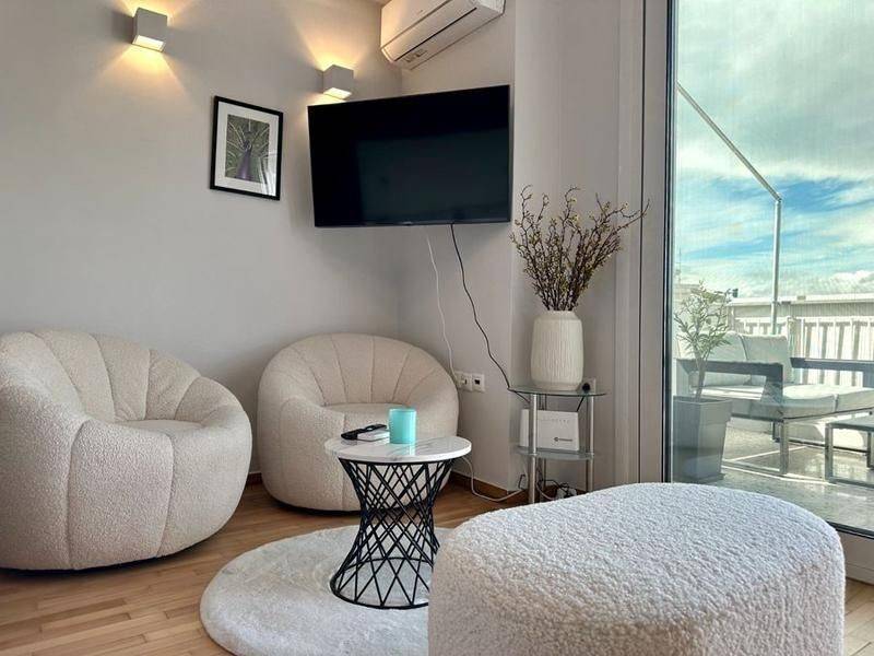 PETRALONA, Kato Petralona - Apartment 43sqm, fully furnished, 2 bedrooms, 5th, penthouse, renovated, built in 1980, renovated in 2025, energy class A+, living room, kitchen, bathroom, autonomous heating (electricity), air conditioning, quiet, bright, view of historical monuments, facade, painted, solar, verandas, large verandas, balcony area 120sqm, awnings, elevator, private terrace, aluminum frames, double glazing, type of flooring mosaic & wood, security door, within the plan, residential zone, east-southeast orientation, access: asphalt, investment, near bus/trolley stop (up to 200m), near metro/electric (up to 1000m), near super market (up to 200m), near school (up to 200m). - Elegant and functional smart apartment of 43 m², offering two fully equipped bedrooms. - It has an impressive private terrace of 120 m² with almost 360° panoramic views, including magnificent images of the Acropolis and the surrounding mountains - It has a short-term rental license and can be legally used as an Airbnb. Price €180,000 (ref. 148711) +30 2109229965 GRAND ESTATE| The point on the map does not indicate the exact location of the property but a point near it. See more properties on our site www.grandestate.gr