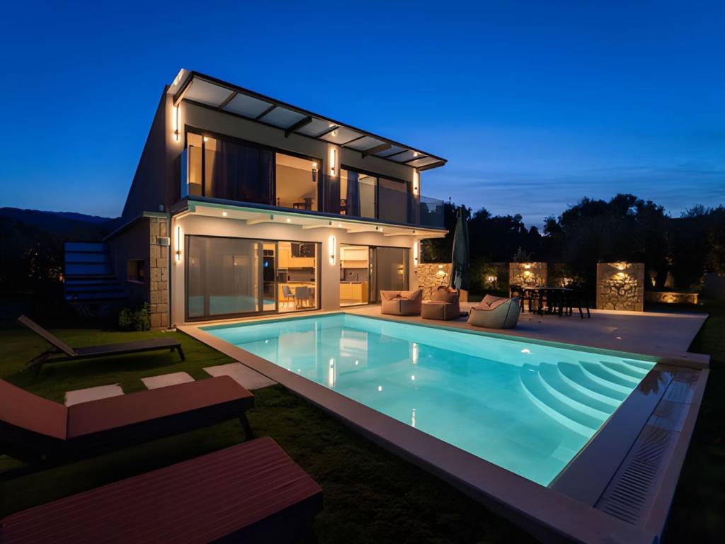 Luxury villa for Sale Lefkada Greece Exquisite Villa in the Heart of Lefkada Discover the epitome of luxury living in the lush landscapes of Lefkada with this 168 sqm haven, part of a prestigious building complex constructed in 2023. A true testament to opulence and sophistication, this villa offers an unparalleled lifestyle experience. Elegant Design & Premium Features This villa features three spacious bedrooms, each with an en-suite luxurious bathroom, plus an additional large bathroom. Designed with both comfort and style in mind, the villa seamlessly blends modern elegance with high-end functionality. First Level Versatile bedroom with a chic boudoir that doubles as an office space Expansive open closet for a touch of luxury En-suite bathroom with a soothing waterfall shower Entertainment enclave featuring a 60-inch Smart TV Subterranean sauna area – a cool retreat for ultimate rejuvenation Second Level – Pool & Garden Area Fully equipped open-plan kitchen with modern appliances Elegant dining area and spacious living room Master bedroom with en-suite bathroom featuring a King-size double bed and a private terrace Panoramic views of the picturesque settlement of Lygia Outdoor Oasis The outdoor area is an extension of luxury, designed for relaxation and entertainment. 46.75 sqm swimming pool surrounded by comfortable recliners Dining area perfect for alfresco meals Fit-in barbecue area for outdoor culinary experiences This fully furnished villa is equipped with state-of-the-art electronic systems and modern devices, ensuring a seamless and convenient lifestyle. With an independent entrance and private parking, enjoy absolute privacy in this exclusive retreat. Prime Location & Local Attractions Located on the verdant and mountainous island of Lefkada, part of the Ionian Islands complex, this villa offers easy access to historical and tourist attractions. Lefkada is surrounded by 24 islets, including the renowned Scorpios, and is celebrated for its unspoiled natural environment and world-famous beaches with crystal-clear waters. Distances 650 meters from the seaside 4 km from Lefkas town 11 km from Nydri port 1-hour drive from the Airport of Aktio – Preveza Own a Piece of Paradise Indulge your senses, elevate your lifestyle, and own a piece of paradise in this luxurious villa. Contact us now to make your dream home a reality.