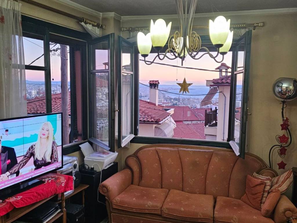 For sale: an apartment in Ano Poli, in a complex of traditional residences with a city view. It is located just 1 minute from a bus stop. It is not very high up and not far from the city center. The apartment is bright. It includes two storage rooms and a parking space for a scooter or motorcycle in a covered underground space room. There is potential to create an open-plan living room and kitchen, as well as an additional bedroom.