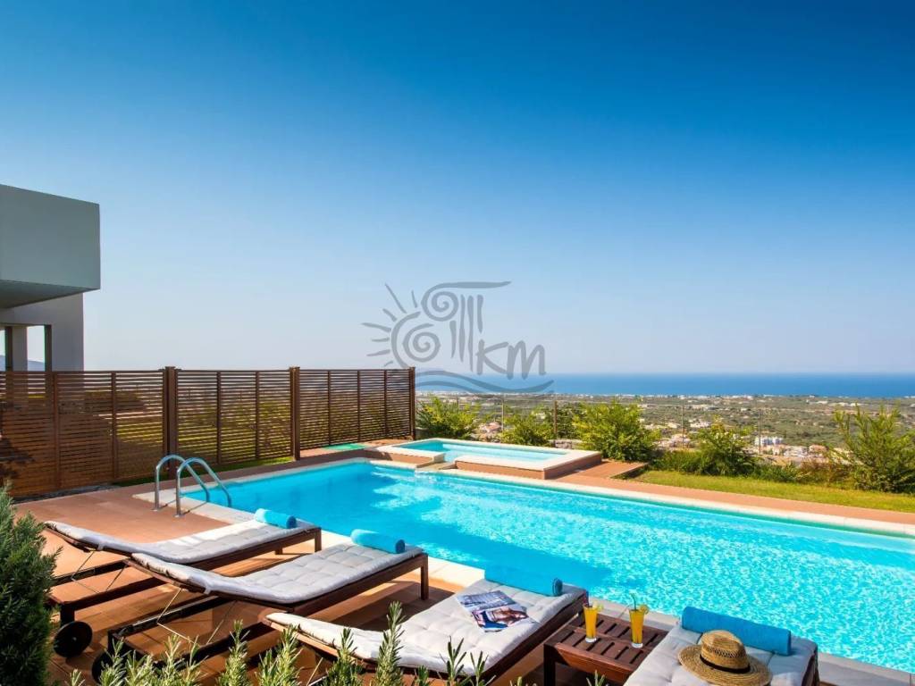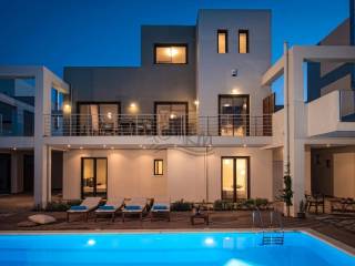 Ηράκλειο, Πισκοπιανό. Πωλείται συγκρότημα πολυτελών βιλών συνολικής επιφάνειας 390 τμ σε οικόπεδο 2.284,25 τμ με κοινόχρηστη πισίνα και ανεμπόδιστη θέα στη θάλασσα. Συγκεκριμένα, αποτελείται από τρεις βίλες, εκ των οποίων η κάθε μία, επιφάνειας 130 τμ, αναπτύσσεται σε τρία επίπεδα και προσφέρει φωτεινό ενιαίο χώρο με σαλόνι με τζάκι, τραπεζαρία και κουζίνα, τρία υπνοδωμάτια, ένα μπάνιο και ένα WC. Επιπλέον, ο εξωτερικός χώρος περιλαμβάνει τη μεγάλη κοινόχρηστη πισίνα, μία παιδική πισίνα, υπαίθρια τραπεζαρία, γκαζόν και ξαπλώστρες. Τέλος, διαθέτει αυτόνομη θέρμανση με κλιματιστικά, ηλιακό θερμοσίφωνα, συναγερμό και ηλεκτρικές γκαραζόπορτες με άνετους χώρους στάθμευσης. Το συγκρότημα βρίσκεται σε ήσυχη περιοχή με εύκολη πρόσβαση στο νέο Αεροδρόμιο Ηρακλείου - Καστελίου και αποτελεί μία εξαιρετική επενδυτική ευκαιρία.