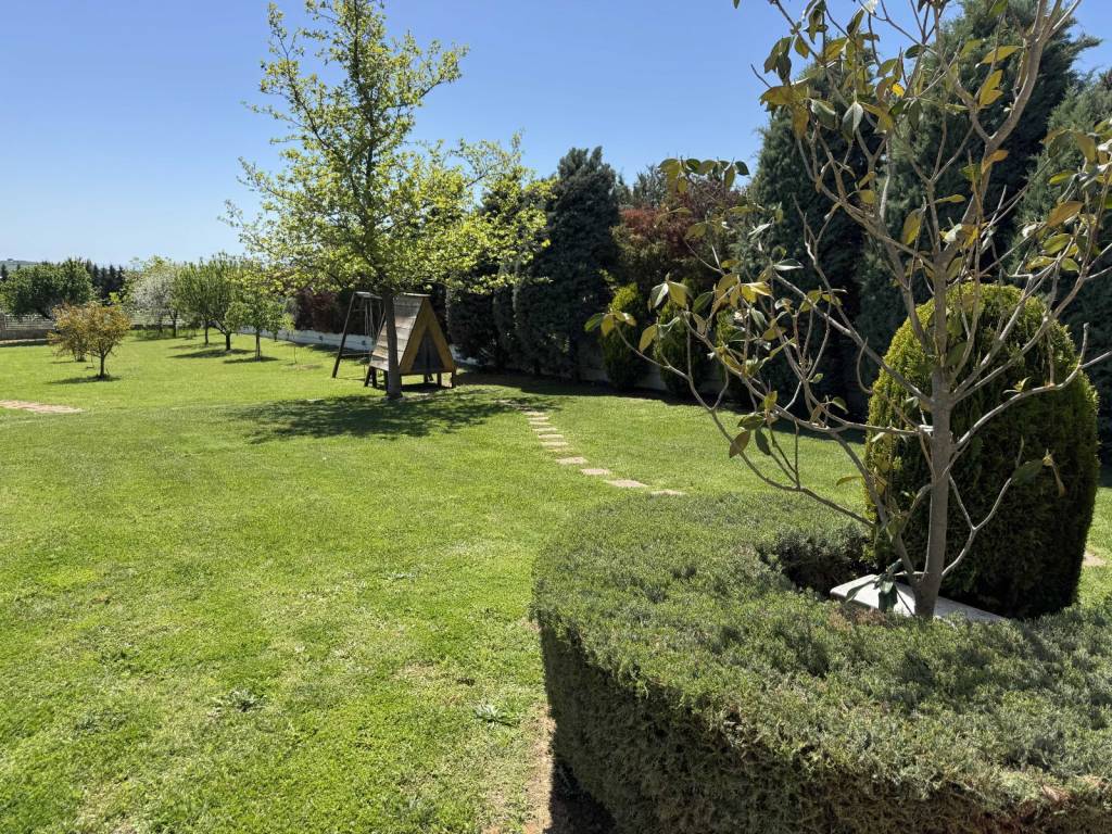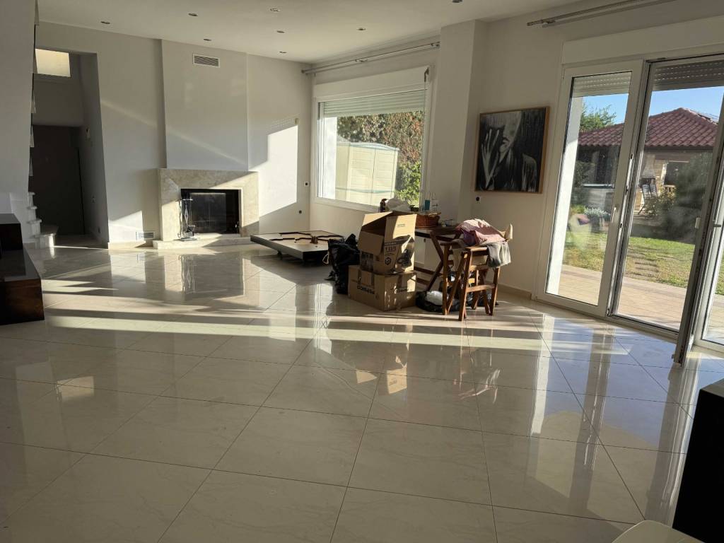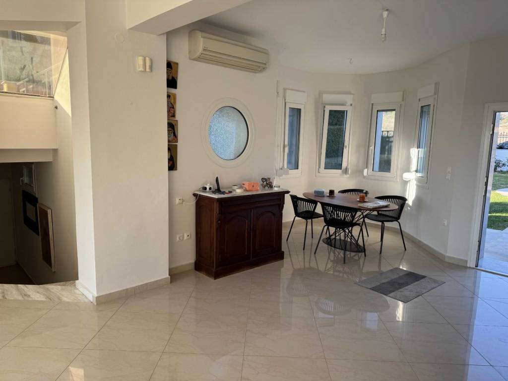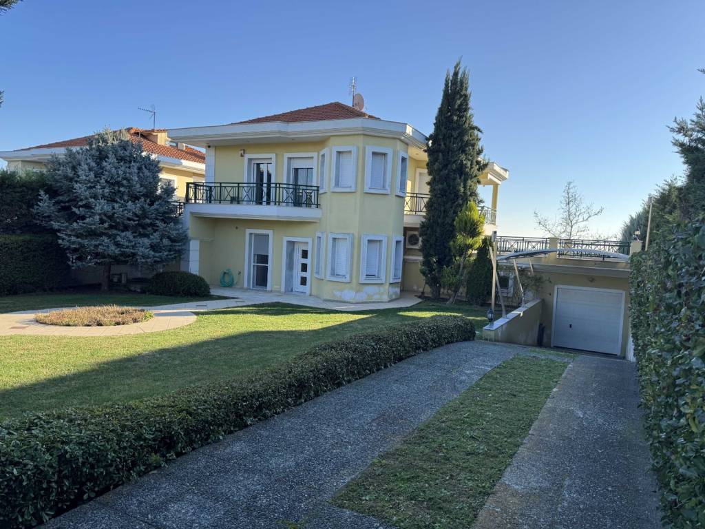 The property concerns an independent residence with a main living area of 223 m², plus a storage area and kiosk totaling 86 m², resulting in a total built surface of 309 m², situated on a 2,200 m² plot for exclusive use. It is the third house of the Amazonas complex, which consists of four residences built on a total land area of 10,000 m² . Located in Kardia - Thermi just 1,0 km from the highway to Chalkidiki . Only 12 min from the airport ( 13km) and 30min from Moudania ( 39km ). International school (Pinewood )in 12km ( 12min drive) The house was constructed in 2004 and has a south-facing orientation. Layout: • Ground floor (75 m²): Living room with a semi-integrated kitchen • Semi-basement (73 m²): Guest room with separate bathroom, laundry area, boiler room, and enclosed garage • First floor (75 m²): Master bedroom with en-suite bathroom, plus two additional bedrooms and one bathroom • Attic (75 m²): Low-height space used for storage (not included in the total built surface) The house holds an Energy Efficiency Certificate Class A, issued in 2024. It is equipped with 10 kW solar panels installed on the roof, under a 15-year contract with the local Public Power Corporation . As a result, the annual energy costs—including heating and hot water—are fully covered. Heating is provided by a Mitsubishi Zubadan heat pump combined with an underfloor heating system, while hot water is also supported by a solar water heater installed on the kiosk roof. The entire house is protected with waterproofing in the basements, porches, and roofs, and includes a front drainage system with a Grundfos pump. As a mechanical engineer, I personally selected all electromechanical equipment, applied advanced technological solutions, and supervised all installations directly. Construction & Comfort Features: • Roof thermal insulation with 5 cm rigid polyurethane foam and 3 cm extruded polyurethane beneath the ceiling • 36 triple-glazed windows, providing abundant natural light and excellent thermal protection • Designed to be highly resistant to extreme temperatures Additional Features: • Multi-stage water filtration system with anti-scale treatment • Energy-efficient fireplace by Piazzetta (Italy) with active hot-air circulation • Interior staircase with stainless steel railings • Villeroy & Boch sanitary ware in all bathrooms • Three-way boiler supplying hot water to the house, kiosk, and storage area • Fully automated garden irrigation system for lawn and fruit trees • Storage under the kiosk includes a 3-ton water tank with a Grundfos pump • Daikin air conditioning unit in the living room • Alarm system with internal and external motion sensors • Satellite TV The garden also features an outdoor stainless-steel calisthenics gym station and a small tree house. Most of the trees are over 20 years old. The kiosk is constructed exclusively of wood, stone, and stainless steel, requiring no maintenance. It includes a barbecue area and a sink with hot water. Beneath the kiosk, there is an enclosed garage and a toilet. All additional constructions have been fully legalized (!!)