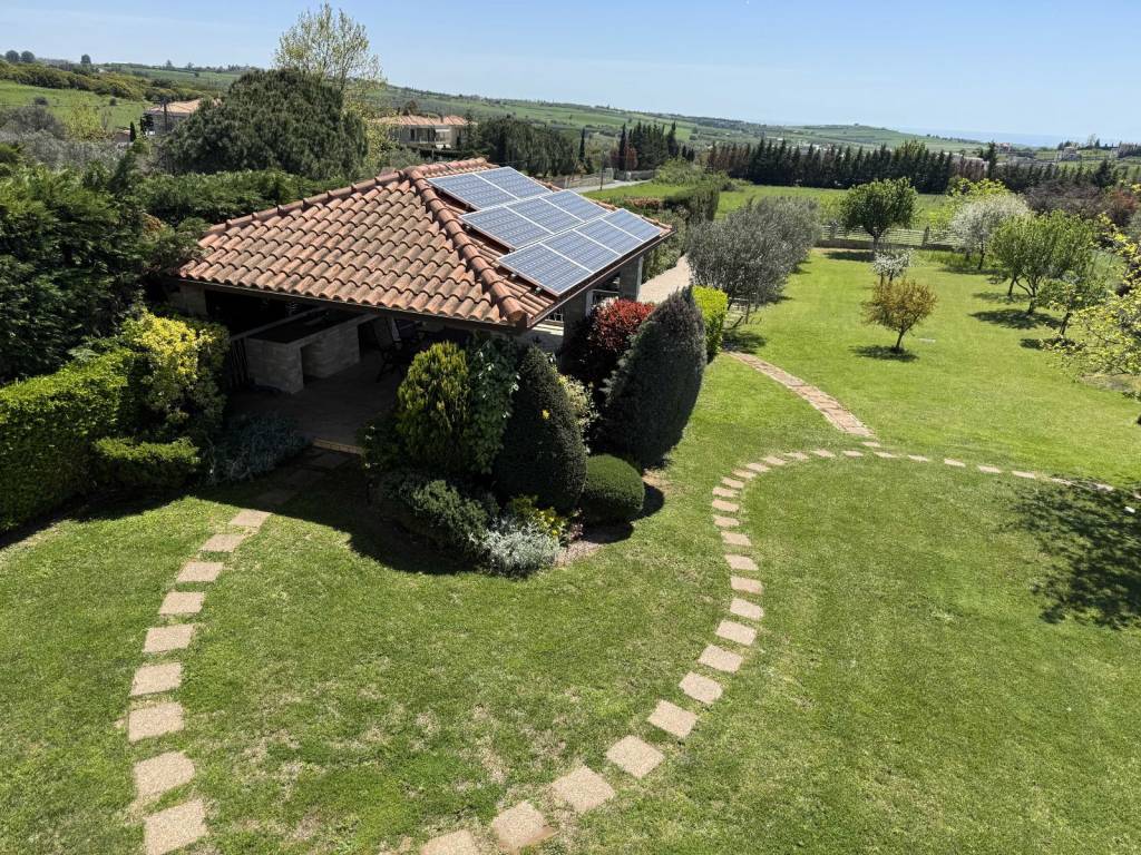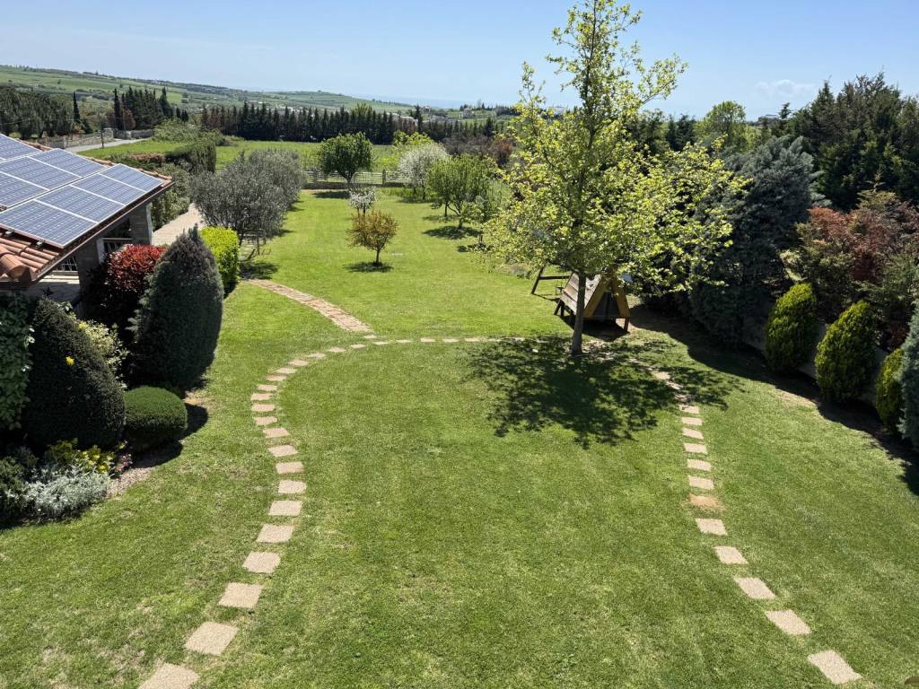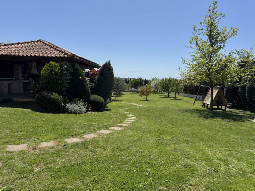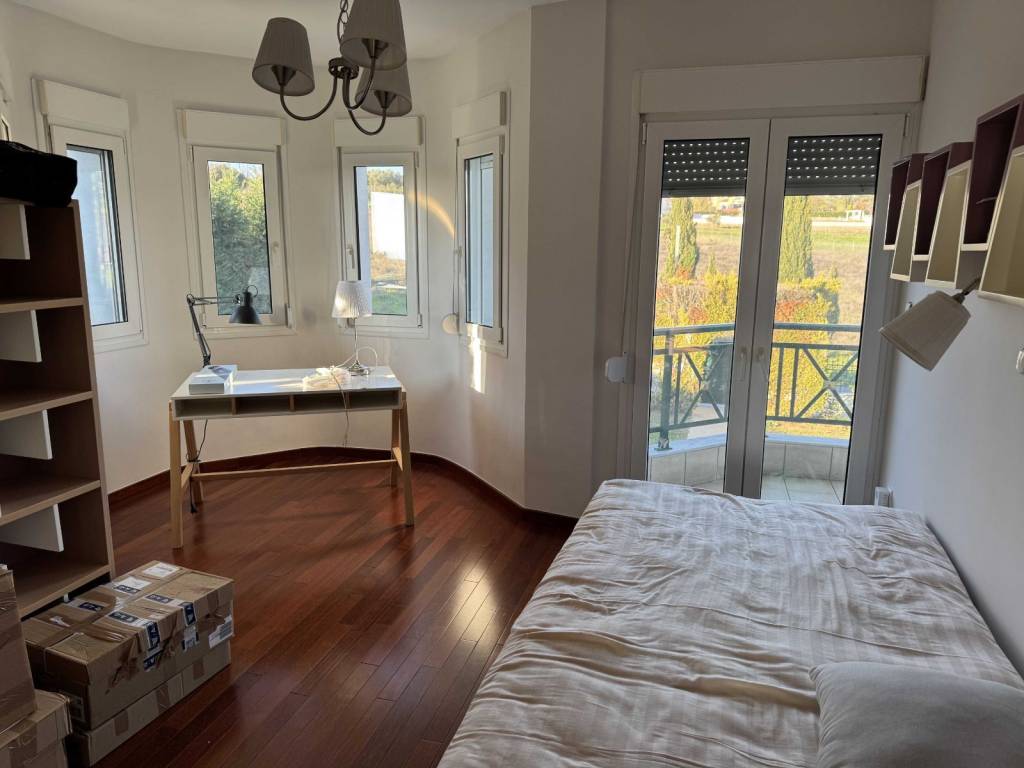The property concerns an independent residence with a main living area of 223 m², plus a storage area and kiosk totaling 86 m², resulting in a total built surface of 309 m², situated on a 2,200 m² plot for exclusive use. It is the third house of the Amazonas complex, which consists of four residences built on a total land area of 10,000 m² . Located in Kardia - Thermi just 1,0 km from the highway to Chalkidiki . Only 12 min from the airport ( 13km) and 30min from Moudania ( 39km ). International school (Pinewood )in 12km ( 12min drive) The house was constructed in 2004 and has a south-facing orientation. Layout: • Ground floor (75 m²): Living room with a semi-integrated kitchen • Semi-basement (73 m²): Guest room with separate bathroom, laundry area, boiler room, and enclosed garage • First floor (75 m²): Master bedroom with en-suite bathroom, plus two additional bedrooms and one bathroom • Attic (75 m²): Low-height space used for storage (not included in the total built surface) The house holds an Energy Efficiency Certificate Class A, issued in 2024. It is equipped with 10 kW solar panels installed on the roof, under a 15-year contract with the local Public Power Corporation . As a result, the annual energy costs—including heating and hot water—are fully covered. Heating is provided by a Mitsubishi Zubadan heat pump combined with an underfloor heating system, while hot water is also supported by a solar water heater installed on the kiosk roof. The entire house is protected with waterproofing in the basements, porches, and roofs, and includes a front drainage system with a Grundfos pump. As a mechanical engineer, I personally selected all electromechanical equipment, applied advanced technological solutions, and supervised all installations directly. Construction & Comfort Features: • Roof thermal insulation with 5 cm rigid polyurethane foam and 3 cm extruded polyurethane beneath the ceiling • 36 triple-glazed windows, providing abundant natural light and excellent thermal protection • Designed to be highly resistant to extreme temperatures Additional Features: • Multi-stage water filtration system with anti-scale treatment • Energy-efficient fireplace by Piazzetta (Italy) with active hot-air circulation • Interior staircase with stainless steel railings • Villeroy & Boch sanitary ware in all bathrooms • Three-way boiler supplying hot water to the house, kiosk, and storage area • Fully automated garden irrigation system for lawn and fruit trees • Storage under the kiosk includes a 3-ton water tank with a Grundfos pump • Daikin air conditioning unit in the living room • Alarm system with internal and external motion sensors • Satellite TV The garden also features an outdoor stainless-steel calisthenics gym station and a small tree house. Most of the trees are over 20 years old. The kiosk is constructed exclusively of wood, stone, and stainless steel, requiring no maintenance. It includes a barbecue area and a sink with hot water. Beneath the kiosk, there is an enclosed garage and a toilet. All additional constructions have been fully legalized (!!)