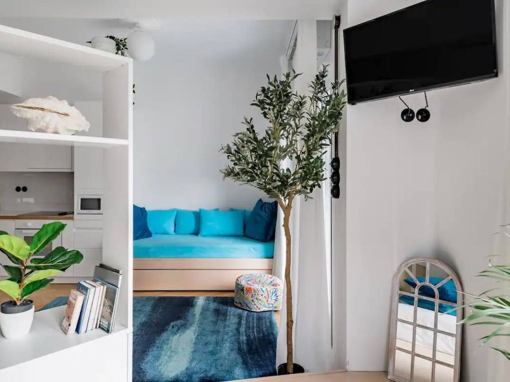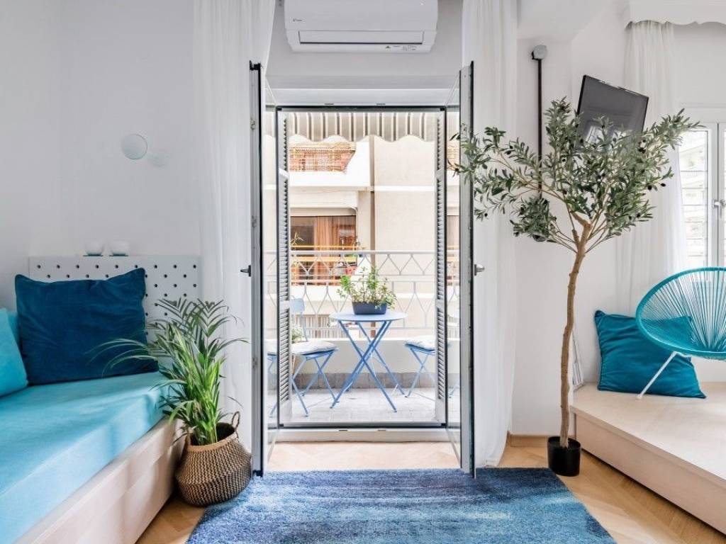 In a beautiful classical building on P.P. Germanou Street, discover this unique 50m² apartment, luxuriously renovated in 2019 with a distinctive modern and sophisticated style from end to end. It offers a cozy, conceptual stay in the vibrant heart of the city, on one of Thessaloniki's most beautiful streets. Ideal for a couple or single guest, it can comfortably accommodate up to 4 people for your visitors. Equipped with inverter A/C for cooling/heating, all appliances (fridge, washer-dryer, oven, hob, microwave), high-quality mattresses & pillows, and double-glazed windows for perfect soundproofing. Features a small balcony overlooking the wonderful and popular central street.