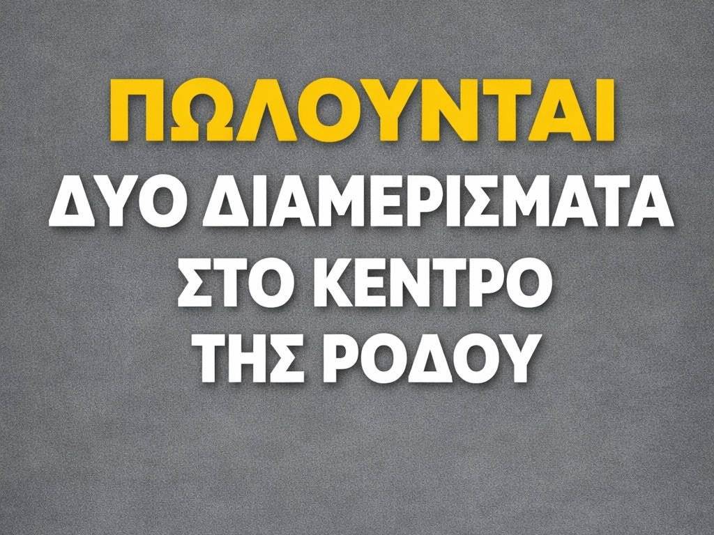 Πωλούνται δύο διαμερίσματα στον 3ο όροφο πολυκατοικίας με ασανσέρ , σε απόλυτα κεντρικό σημείο της Ρόδου, λίγα βήματα από την Πλατεία Κύπρου. Περιοχή με σταθερή και διαχρονική ζήτηση για κατοικία ή επένδυση. Τρόπος πώλησης Πώληση και των δύο διαμερισμάτων μαζί ή πώληση μόνο του διαμερίσματος των 190 τ.μ. Το διαμέρισμα των 94 τ.μ. δεν πωλείται μεμονωμένα Διαμέρισμα Α’ – 190 τ.μ. 2 υπνοδωμάτια Μεγάλη ανεξάρτητη κουζίνα Άνετο και ευρύχωρο σαλόνι 2 μεγάλα μπάνια Διαμπερές, με άριστο φωτισμό & αερισμό Μπαλκόνια εμπρός και πίσω Ιδανικό για μεγάλη κατοικία, διαχωρισμό σε επιμέρους μονάδες ή επενδυτική αξιοποίηση. Διαμέρισμα Β’ – 94 τ.μ. 2 υπνοδωμάτια Σαλόνι – κουζίνα 1 μπάνιο Πωλείται μόνο μαζί με το διαμέρισμα των 190 τ.μ. και μπορεί να χρησιμοποιηθεί ως αυτόνομη κατοικία, επαγγελματικός χώρος ή συμπληρωματική επενδυτική μονάδα. Τοποθεσία Κέντρο Ρόδου Άμεση πρόσβαση σε αγορά, υπηρεσίες & συγκοινωνίες Λίγα μέτρα από την παραλία Υψηλή και σταθερή εμπορική αξία Γιατί αξίζει Σπάνια συνολικά τ.μ. στο κέντρο της Ρόδου Ευελιξία αγοράς και αξιοποίησης Ιδανικό τόσο για επενδυτές και επαγγελματίες, όσο και για μόνιμη κατοικία Τοποθεσία που διατηρεί διαχρονικά την αξία της Τα διαμερίσματα χρήζουν μερικής ανακαίνισης, προσφέροντας δυνατότητα αναβάθμισης και προσαρμογής στις ανάγκες του νέου ιδιοκτήτη. Επικοινωνήστε μαζί μας για περισσότερες πληροφορίες ή για προγραμματισμό επίσκεψης.