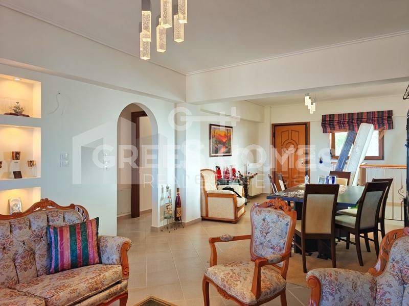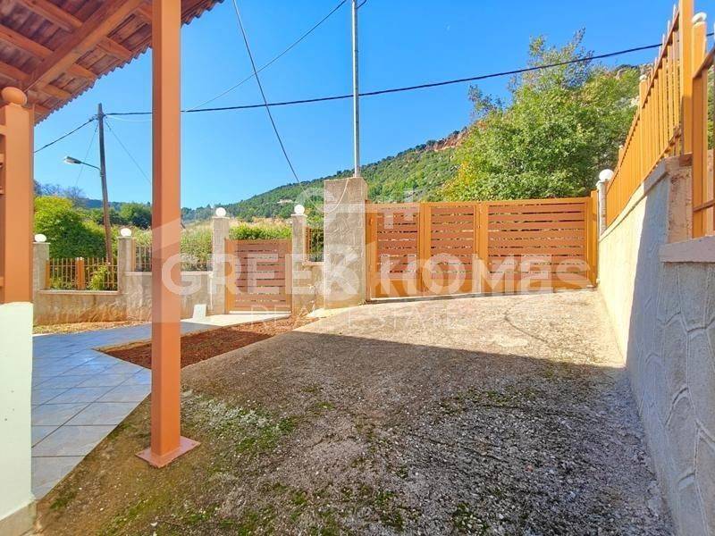 Sikyona, Kiato - Independent Maisonette 210sqm plot 550sqm, fully furnished, bedrooms 3, levels 2, ground floor (110sqm) - 1st (100sqm), newly built, year built 2021, energy class C, 2 living rooms, hall, 2 kitchens, 2 bathrooms, heating type: autonomous (oil), air condition, parking open space,2, quiet, dual aspect apartment, luminous, panoramic view, frontage, storage space, solar heater, fireplace, balconies, garden, built in appliances, aluminum frames, double glazed windows, door screen, ceramic tiles floors, office, three phase electricity, secure door, luxurious, internal staircase, pets allowed, north-eastern orientation, close to square (up to 200m), close to school (up to 100m).