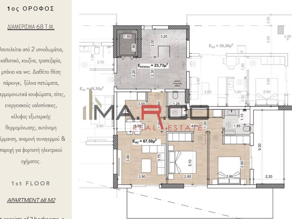 Apartment For sale, floor: 1st, in Agios Dimitrios - Asirmatos. The Apartment is 68 sq.m.. It consists of: 2 bedrooms, 1 bathrooms, 1 wc and it also has 1 parkings (1 Pilotis space). The property was built in 2026. Its heating is Personal with Heat pump, Solar water system, Thermal insulation, Thermal facade are also available, the energy certificate is: A+. The property's status is: Under construction, it is close to Transportation, School, Square, Super Market and it has Southeast orientation. The Apartment is With Facade, Bright, Airy, Sunny. Price: €235.000. MA.R.CO REALESTATE & CONSTRUCTION, contact phone: 6944855335, 2109650870, email: info@marco-realestate.gr, website: