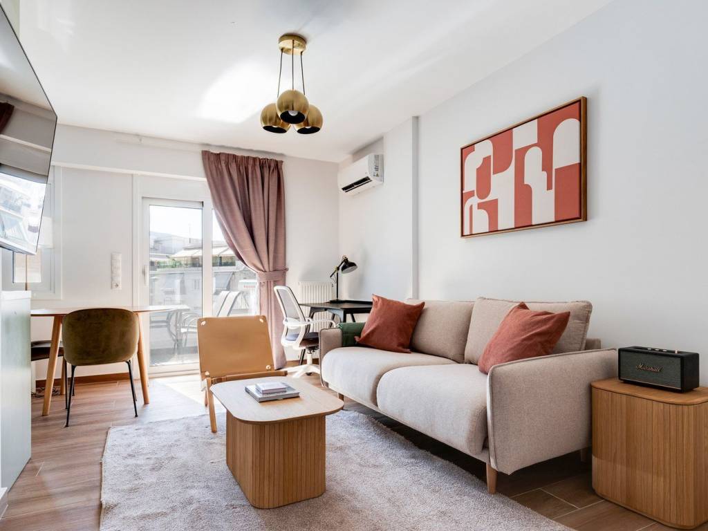 As with any Blueground apartment, you’ll find a thoughtfully designed space complete with beautiful furnitureand a fully equipped kitchenin this one bedroom property. And, thanks to our superior quality mattresses, luxury linens, and towels, you can relax knowing you’ll always feel comfortably at home. When you’re ready for some fun, you can take in the Athens vibes or bring the entertainment to you with the premium wireless speaker or smart TV.