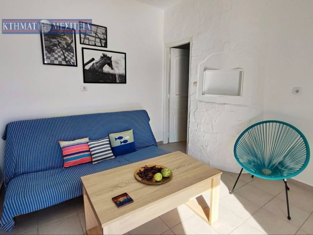 It has an independent entrance and a large terrace with a beautiful view of the beach of Azolimnos and the surrounding islands. It is in a good location and there is easy access from the municipal road.