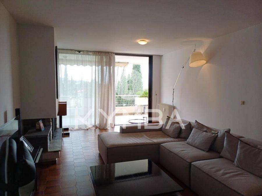 Kifissia, Zirineio, Apartment For Sale, 75 sq.m., Property Status: Amazing, Floor: 3rd, 1 Level(s), 2 Bedrooms 1 Kitchen(s), 1 Bathroom(s), Heating: Autonomous - Petrol, View: Unlimited, Building Year: 1980, Energy Certificate: C, 1 parking(s), Floor type: Wooden floors + Tiles, Type of door frames: Aluminum, Features: Security door, Security alarm, CCTV, Storage room, Fireplace, Electric Appliances, Double Glazed Windows, Balcony Cover, Balconies, Luxury, Airy, Roadside, Bright, AirConditioning, Grass, Trees, Back yard (Garden), Painted, Renovated, Price: 300.000€. KYMBA, Tel: 2103641333, email: info@kymba.gr