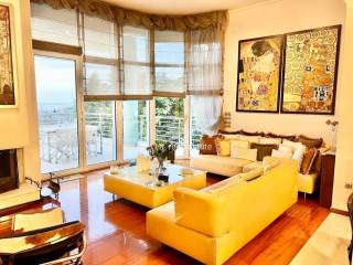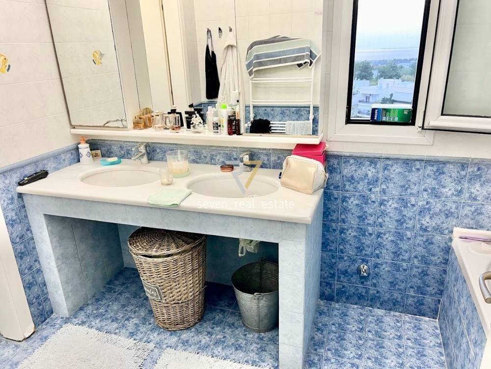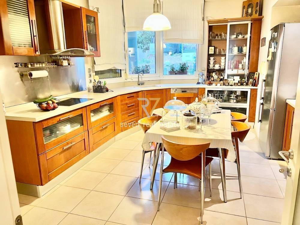 Thessaloniki, Panorama: For sale 300sq.m. detached house on a 500sq.m. plot, ultra-luxurious, 3 levels with elevator and underfloor heating with oil & pellet burners. Its configuration is as follows: 1st ground floor (also with its own entrance) A large living room-kitchen, 3 bedrooms, bathroom, storage room, boiler room and elevator engine room. 2nd ground floor (main entrance to the house), living room with large windows and fireplace, separate kitchen and 1 bathroom. 1st floor: 4 bedrooms (one with its own bathroom and large dressing room) and a bathroom. The house was built in 1999 and has an internal elevator, synthetic frames with double glazing and screens, armored door, alarm, air conditioning, built-in wardrobes, tiled & wooden floors, awnings, landscaped garden and 3 parking spaces with the possibility of housing. It is located in an extremely quiet neighborhood with an unlimited view of the sea, ideal for large families. Price 720,000€ | Property Code: #38254