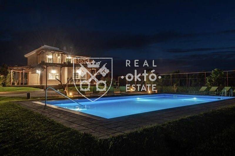 Property Code: 1-10 - Villa FOR SALE in Michaniona Aggelochori for € 1.200.000 . This 300.00 sq. m. furnished Villa is on the Ground floor and features 4 Bedrooms, Livingroom, 2 Kitchens, 3 bathrooms . The property also boasts Heating system: Individual - Petrol, marble and tile floor, view of the Sea, Window frames: Synthetic, a storage unit sqm, garden, fireplace, swimming pool, A/C, alarm system, electrical appliances, awnings, insect screens, double-glazed windows, solar-powered water heater, playroom, internal staircase. The building was constructed in 1990 Plot area: 5000 s.q. . Building Energy Rating: B
