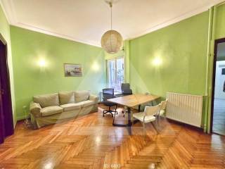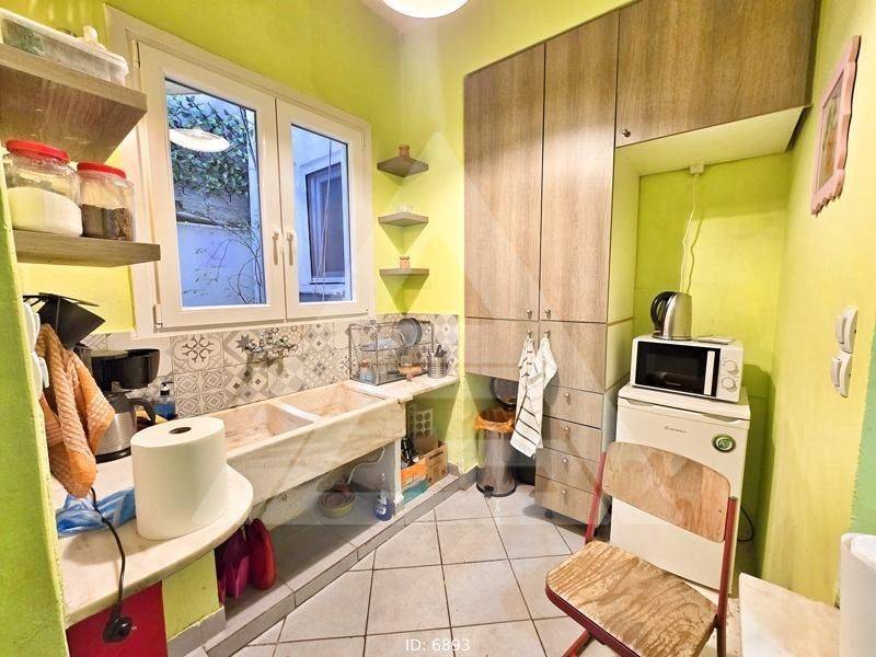 Pedion Areos - Apartment 103sqm bedrooms 2, levels 1, ground floor, partly renovated, year built 1939, renovation year 2023, energy class F, 2 living rooms, hall, kitchen, 2 bathrooms, heating type: central (natural gas), quiet, luminous, internal plot, storage space, elevator, aluminum frames, double glazed windows, wood floors, separate kitchen, office, residential zone, south-eastern orientation, access from asphalt, commercial use, close to metro/train (up to 500m), close to bus stop (up to 100m), close to park (up to 100m).