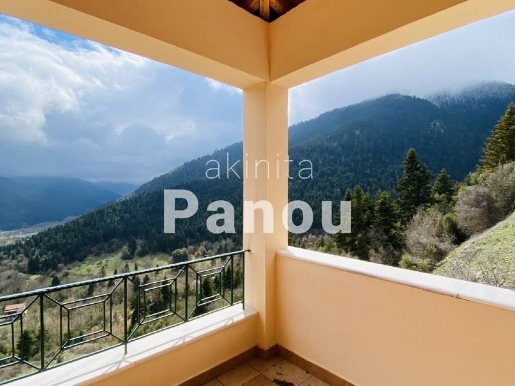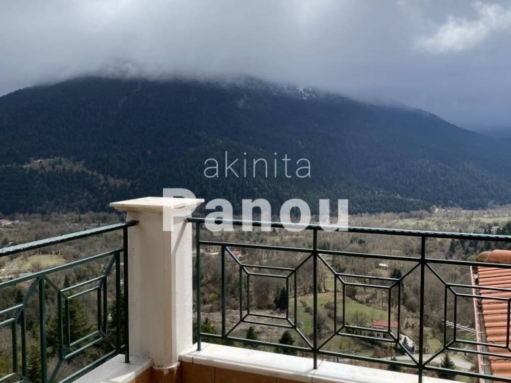 Property code: 1-240 - Karpenisi/ Koryschades - FOR RENT - House consisting of 2 semi-detached maisonettes. Furnished, 3 levels, total area 175 sq.m. on a plot of 1620 sq.m. Unique view! It consists of 4 bedrooms, 2 living rooms with fireplace, 2 kitchens, 2 bathrooms, 2 WC, 4 verandas, 2 storage rooms, playroom, parking. Built in 2003. It has pre-installation for heating (to be agreed), aluminum frames with double glazing, tiled roof, internal staircase. Distance from the city 5000 meters, distance from the Velouchi ski center 15000 meters. Price: €980 (They are also sold separately for €490 each)
