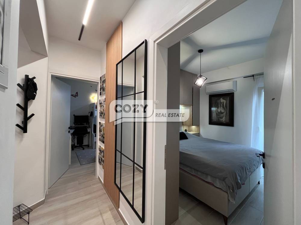 It consists of two bedrooms, an open-plan living room with kitchen, and a bathroom. It is fully furnished, equipped with electrical appliances, and was completely renovated in 2024.