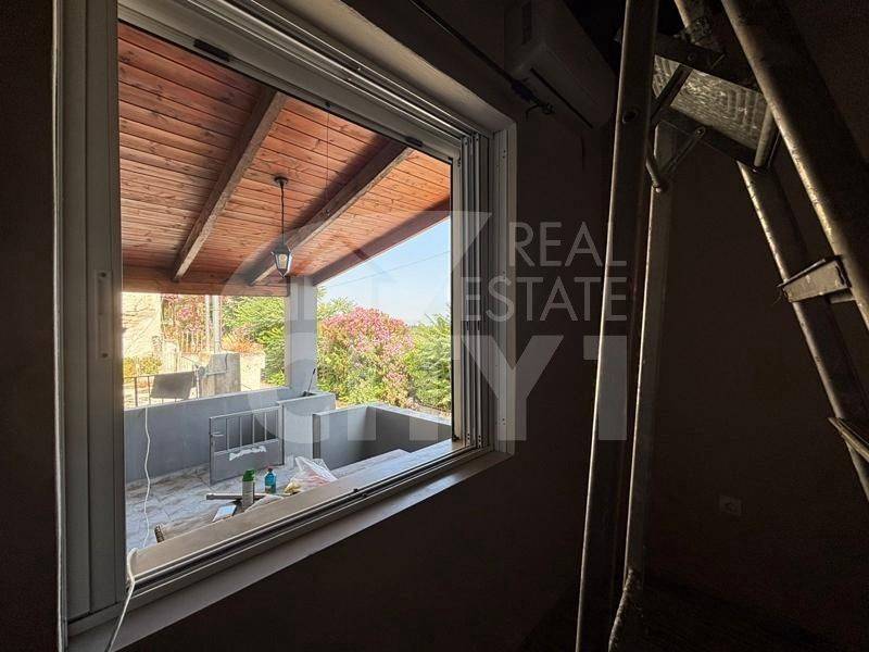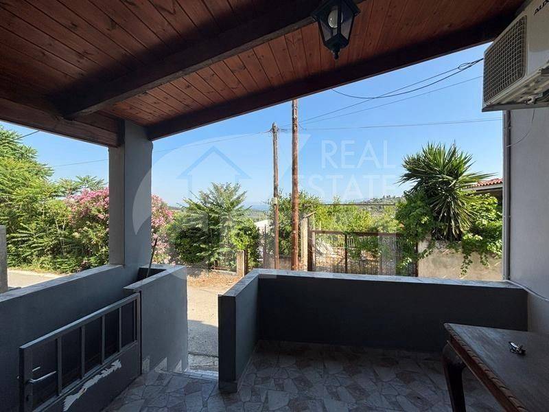 Oropos - Detached House 55sqm plot 1sqm, partially furnished, bedroom, levels 1, upper floor, fully renovated, year built 1985, energy class D, living room, hall, kitchen, bathroom, heating type: autonomous (electricity), air condition, quiet, dual aspect apartment, luminous, unobstructed view, frontage, painted, storage space 10sqm, fireplace, balconies, large balconies, balcony 10sqm, garden 1sqm, aluminum frames, double glazed windows, door screen, ceramic tiles floors, secure door, pets allowed, residential zone, west-southern orientation, access from asphalt, close to πάρκο (up to 0), close to βουνό (up to 0).