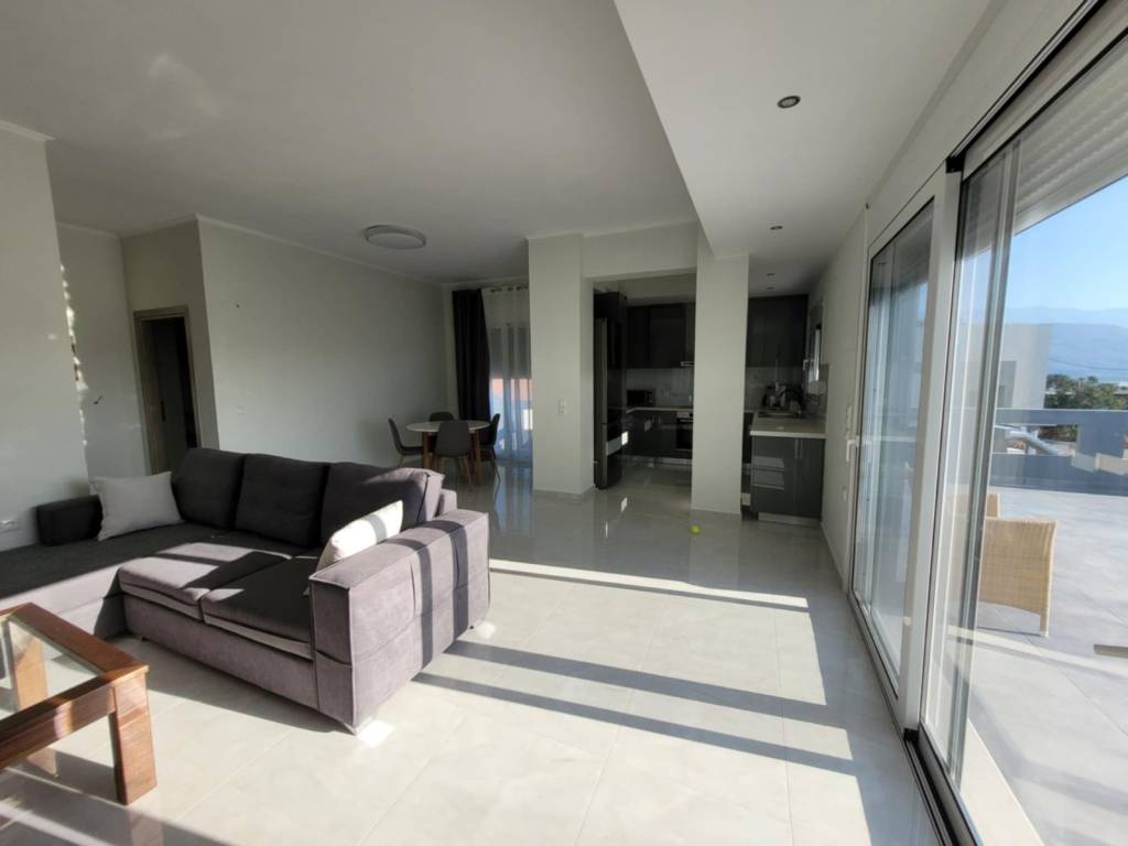 Bright and comfortable 1st floor apartment for rent, ideal for a family or couple. It consists of two spacious bedrooms, a modern living room-kitchen, a large and functional bathroom, as well as an impressive terrace of approximately 45 sq.m., ideal for moments of relaxation and hospitality. The apartment is available fully furnished and equipped with all the necessary household appliances, offering comfort and convenience from the very first day. The common areas are included in the price, making it a particularly advantageous choice. Ready to move in, it combines functionality, comfort and quality living.