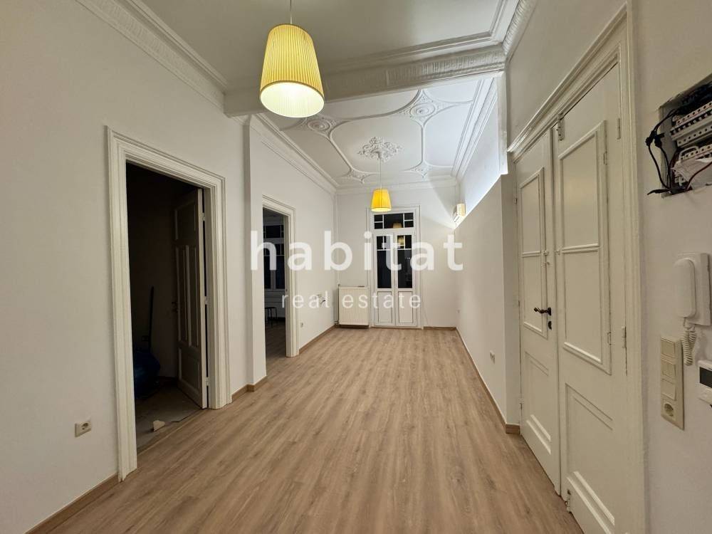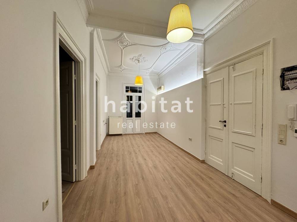 In one of the most privileged and historic areas of the center of Thessaloniki, an excellent, fully renovated apartment of 75 sq.m. is available for rent, located on the 2nd floor of an imposing neoclassical, preserved building with an elevator.