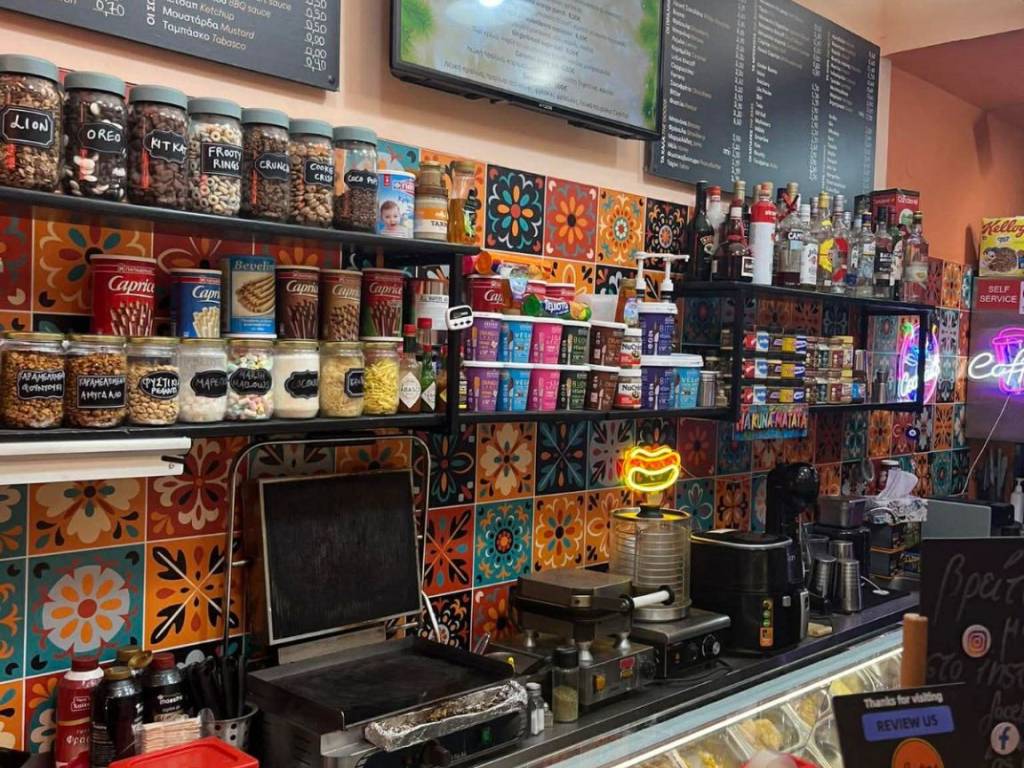 Λειτουργικό χώρο 26 τ.μ. με πλήρη επαγγελματικό εξοπλισμό (κρέπα, τοστ, βάφλα, hot dog, καφέ), ολοκαίνουριο ψυγείο, τραπέζια και καρέκλες, τουαλέτα.