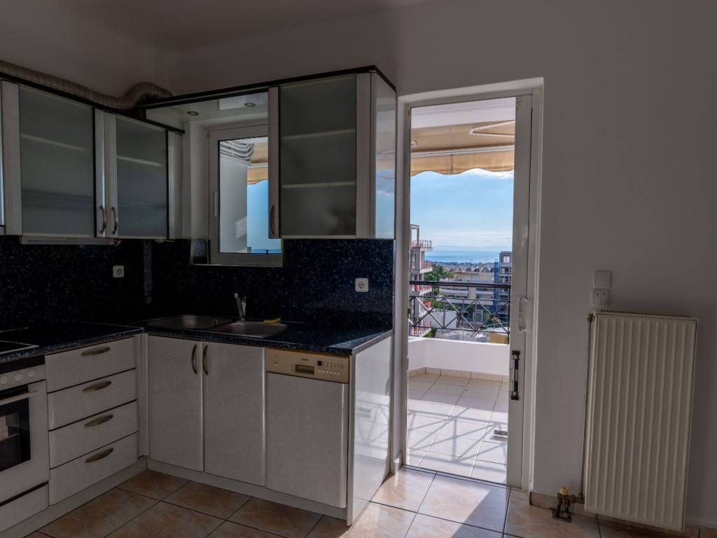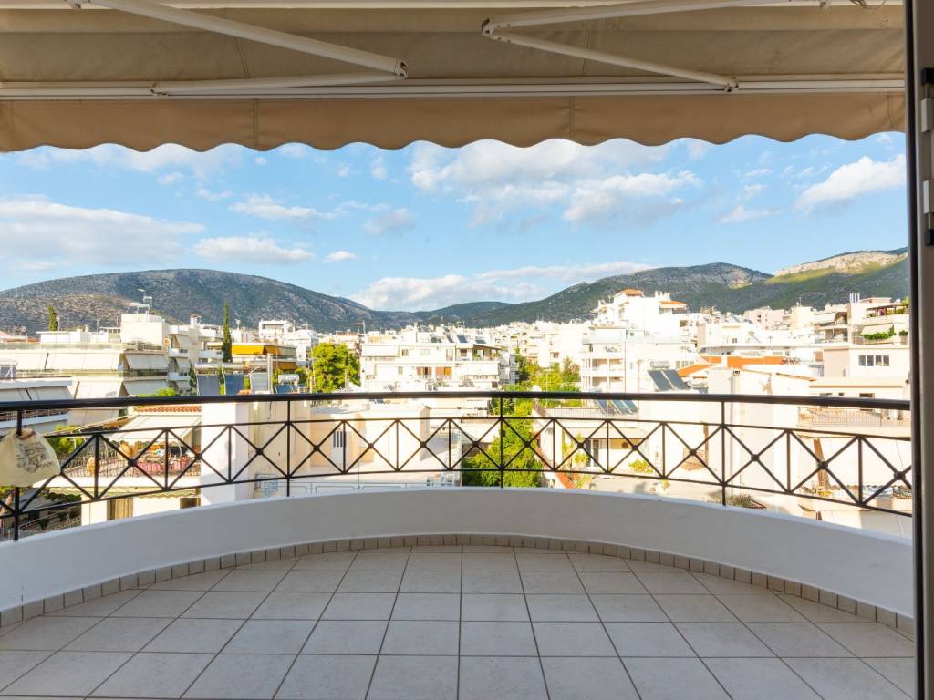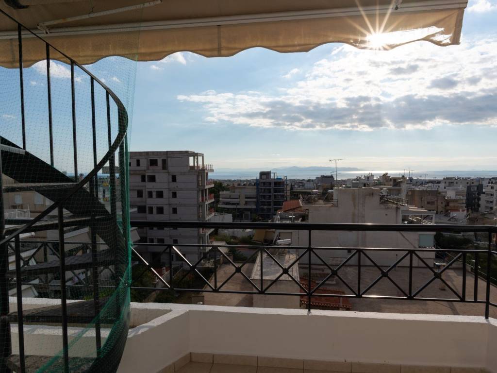 5th-floor penthouse, 95 square meters, front-facing, airy, and corner unit. This bright apartment features 2 large bedrooms (with the potential for a 3rd), 2 bathrooms (including 1 WC), a separate kitchen, and large balconies on both the front and back. Built in 2000 and partially renovated in 2016. Located in a very beautiful and quiet neighborhood close to the local market, it is just a 3-minute walk from Macedonia Square (future metro station) and a 5-minute drive (or 20-minute walk) from the Ellinikon Experience Park. The property is situated next to a park and playground. Key Features: - Two parking spaces (one closed and one open) - Private 85 sq.m. roof terrace and BBQ area - Heat pump (independent installation 2016) and solar water heater - Unobstructed sea and mountain views - Security door and alarm system - Fireplace - Storage room - Built-in electrical appliances - Awnings
