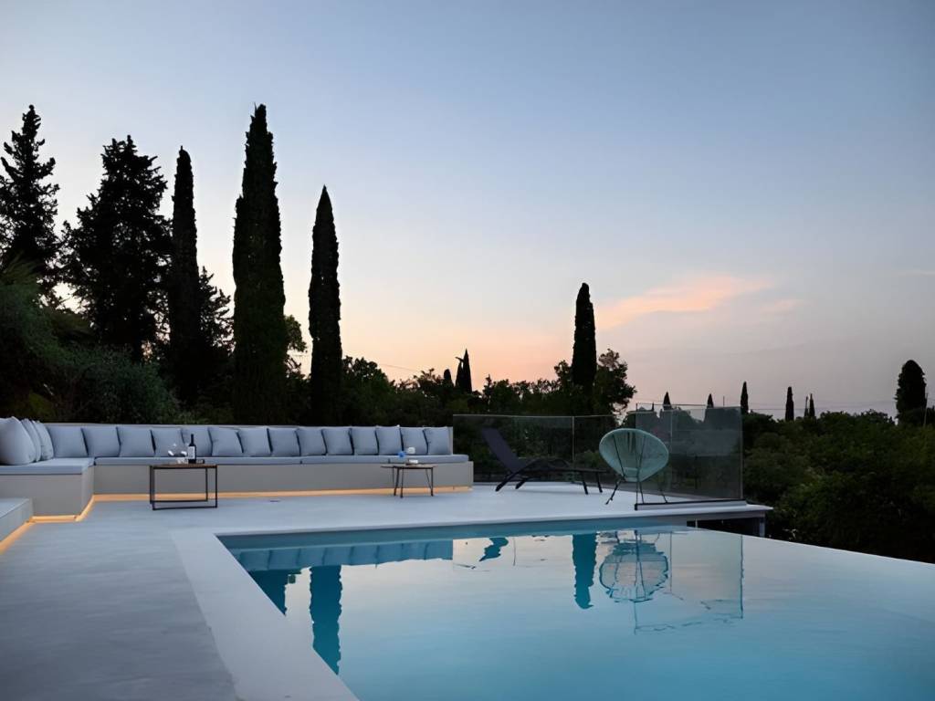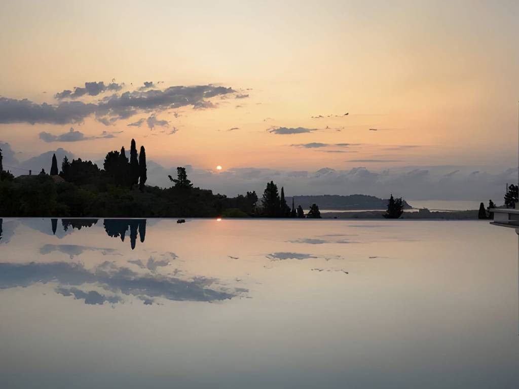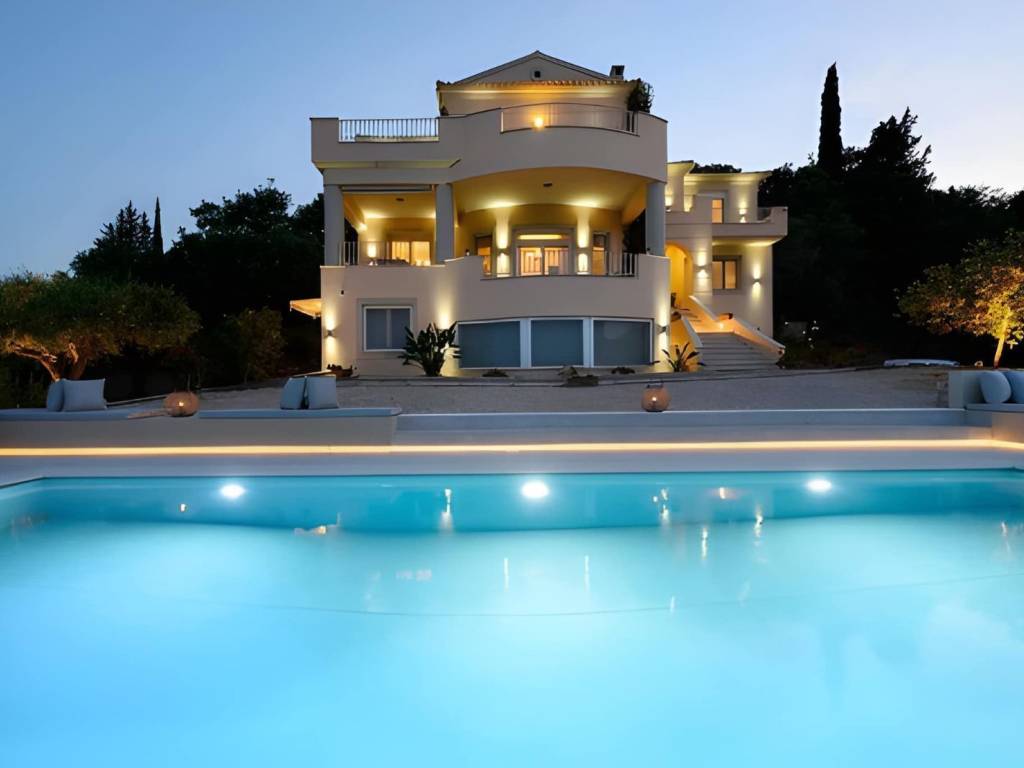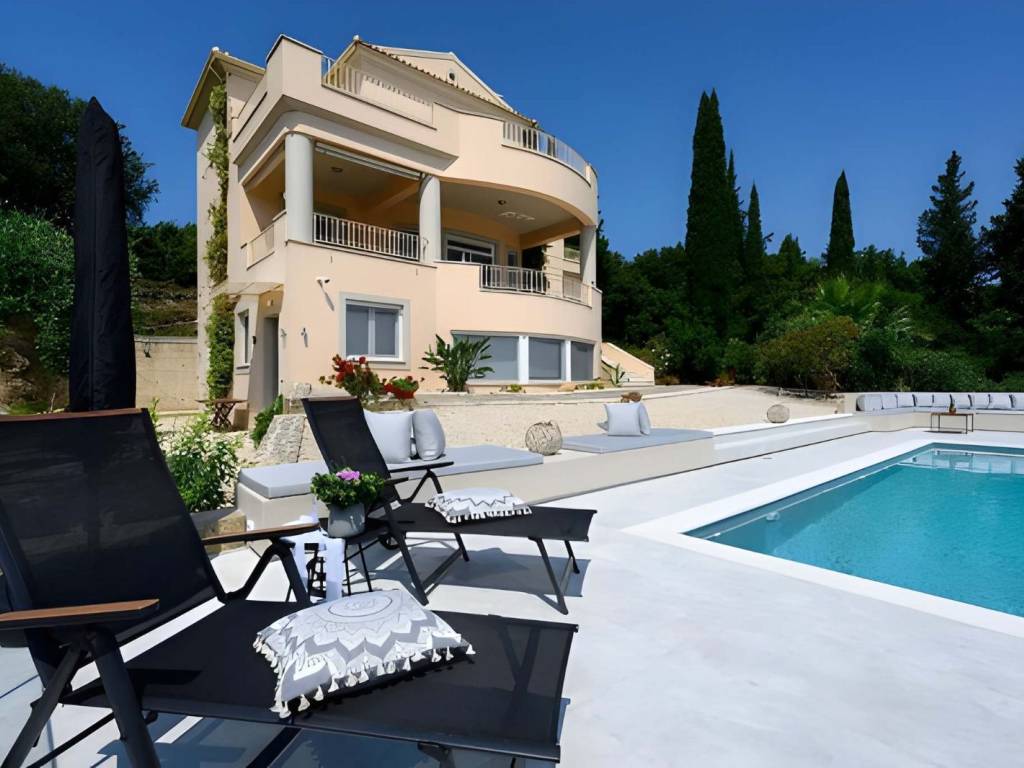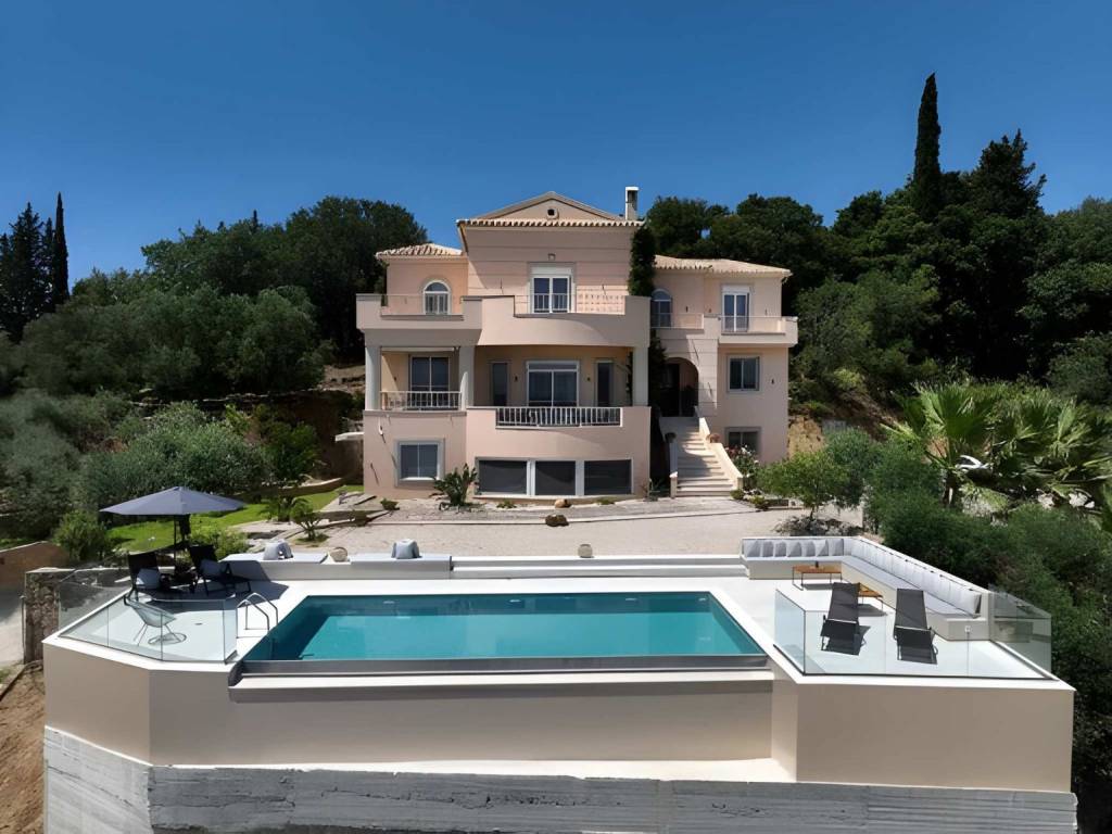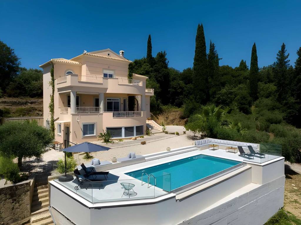 House for sale Central Corfu, Viros This Impressive house for sale Central Corfu, Viros, offers a unique blend of tranquility and convenience. Here are some key features and details: Location: Situated on a hillside among an olive grove. Fabulous views of the sea and Corfu town. 1 kilometer from the village of Viros. 5 minutes from amenities on the main route to Corfu town. Property Overview: Spacious concrete parking area. Entrance lobby leading to the main living areas. Split-level living area with an open fire and a vast veranda with sea views. Dining area on the South side of the house. Kitchen with an island. Study/office that could be used as an additional bedroom. Upper Floor: Marble staircase leading to three bedrooms. Master bedroom with a walk-in closet and en-suite bathroom with a bathtub. Two additional bedrooms sharing a bathroom. Lower Level: Separate, self-catered apartment with tasteful construction and decoration. Two bedrooms with fitted wardrobes. Bathroom. Open-plan kitchen/living/dining area with large windows capturing views. Corner bookcase for charm and practicality. Outdoor Features: Swimming pool with a paved area for relaxation. Gardens with sea views. Additional Amenities: Central heating with an oil-fired burner. Alarm system and security cameras. Double glazed windows, insect nets, TV cabling, aluminum shutters. Telephone line and Wi-Fi. Year Built: 2010 Bedrooms: 4 in the main house + 2 in the apartment Bathrooms: 3 in the main house + 1 in the apartment Garage: Yes Sea View: Yes Swimming Pool: Yes Size: Total Area: 330 m2 Ground Size: 2500 m2 This property combines modern amenities, stunning views, and a peaceful location, making it an ideal home or investment in the beautiful island of Corfu.