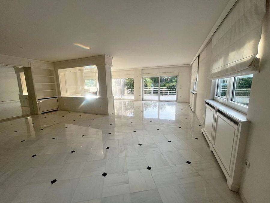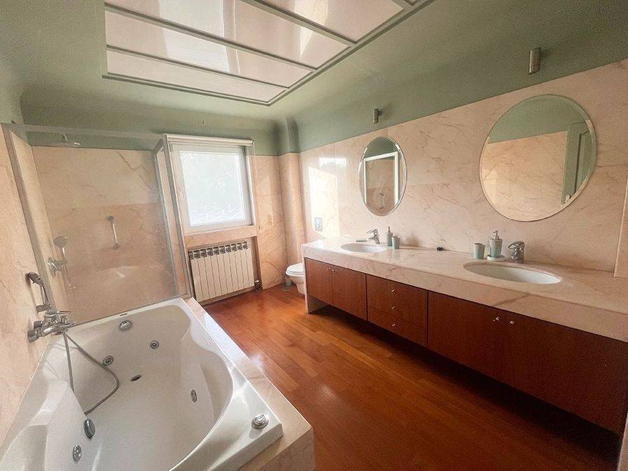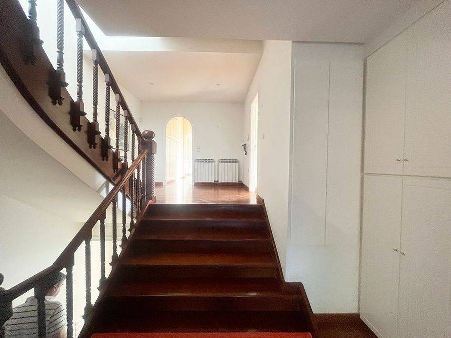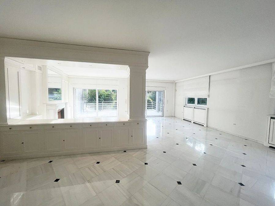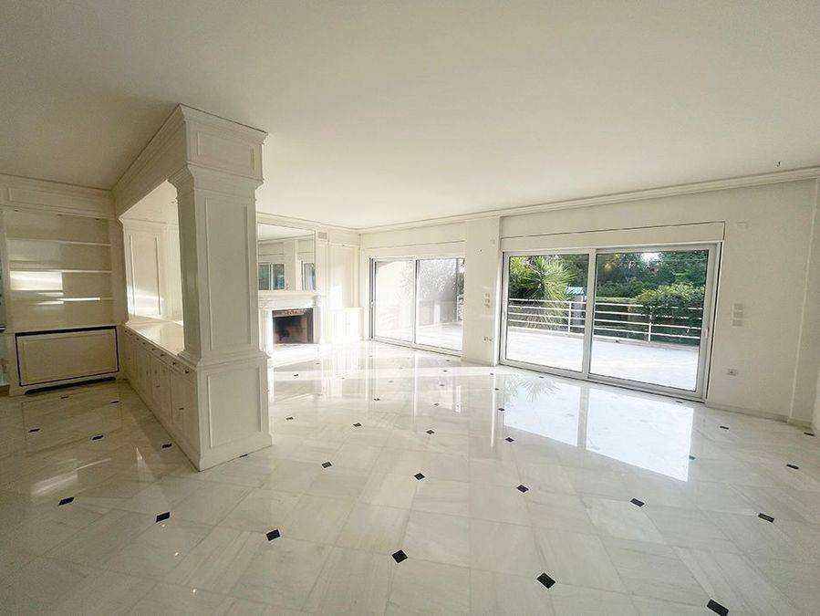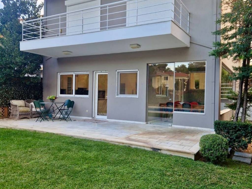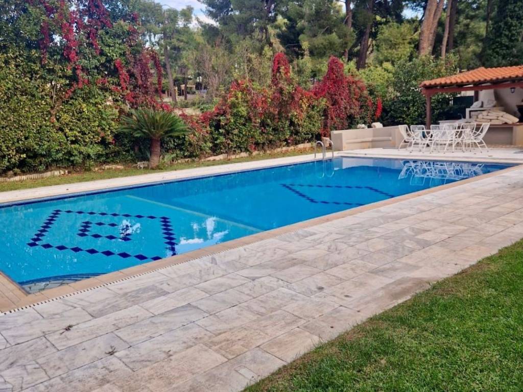 Set in one of the most privileged and verdant areas of Ekali, this bright, fully autonomous villa offers a total living area of 551 sq.m. on a 450 sq.m. plot, enjoying a southern orientation and panoramic views. The residence is arranged over three levels and is served by an internal elevator, ensuring comfort and full accessibility. The semi-basement level of 200 sq.m. features a spacious living area with fireplace, conference table, playroom, and a fully equipped gym (included in the rental). It also includes a staff bedroom with en-suite bathroom, guest WC, boiler room, engine room, storage area, and parking spaces. The raised ground floor of 150 sq.m. comprises elegant reception areas with fireplace, a formal dining area, and a fully equipped kitchen with sitting area. A large 35 sq.m. terrace provides direct access to the garden and the 6 × 12 m swimming pool with BBQ area, which can be offered either as shared facilities or for exclusive use at an additional €1,000 per month. The first floor, also 150 sq.m. and arranged on two levels, includes two bedrooms sharing one bathroom and a 10 sq.m. terrace, a master bedroom, and a spacious office that can be converted into an additional bedroom, as well as a 25 sq.m. terrace. The upper level features another master bedroom, a storage room, and access to the impressive 200 sq.m. rooftop terrace with uninterrupted panoramic views. The villa is equipped with electric awnings, double-glazed aluminum windows with insect screens and electric shutters, independent oil heating on each floor, a security door, alarm system, satellite dish, three-phase electricity, and full accessibility for people with disabilities. The floors are finished with high-quality tiles, and the property includes one indoor and one outdoor parking space. The location is highly privileged, just 10 minutes from Kifisia Square, 2 minutes from Ekali Sports Club, 7 minutes from Fasidei Park, and 30 minutes from Athens International Airport. This is a property of exceptional aesthetics and functionality, ideal both as a luxury private residence and as a home–office combination, offering comfort, privacy, and prestige in the heart of Ekali.