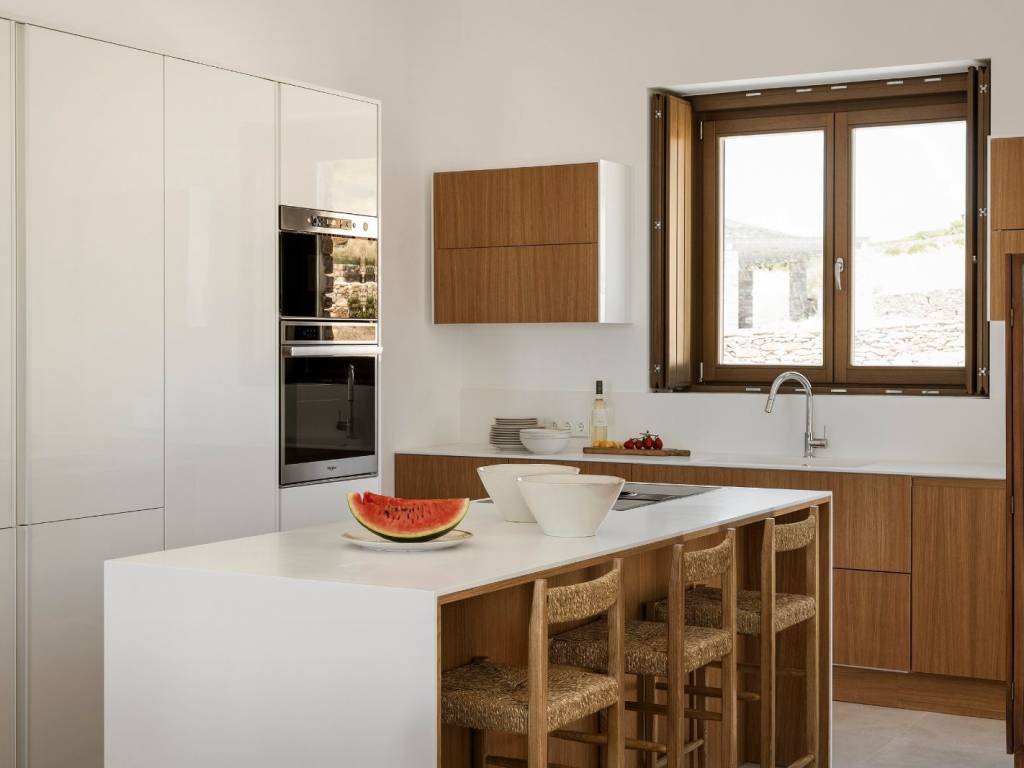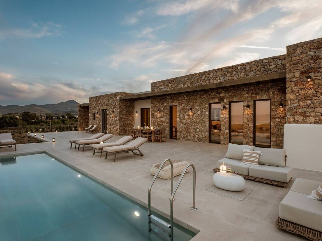 A newly built villa of exceptional aesthetics with a sea view, located in the Ysterni area of Paros. The villa is developed on a single level of 193sq.m., situated on a plot of 4,500sq.m., with direct access to the garden. It consists of a modern living room, kitchen, 4 bedrooms with en-suite bathrooms, 1 of which is independent and includes a kitchenette, making it ideal for use as a guesthouse. The property is surrounded by spacious terraces, seating areas with sea views, a well-maintained garden, and a swimming pool. This is a beautiful, newly built property, located a short distance from the picturesque town of Naoussa in Paros.