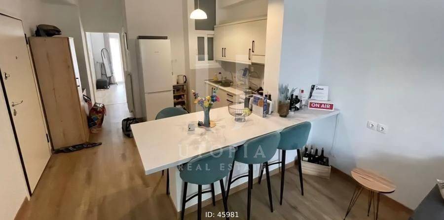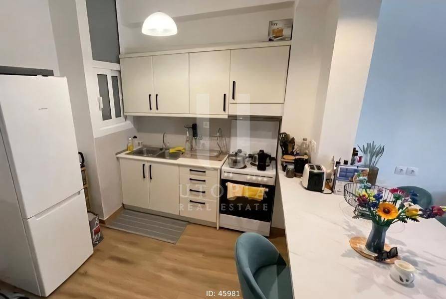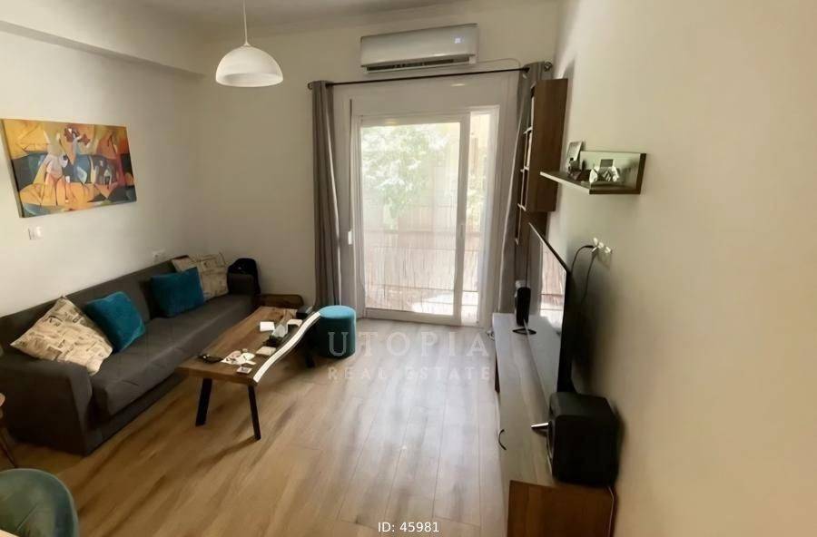 Petralona - Apartment 54sqm fully furnished, bedroom, levels 1, raised ground floor, fully renovated, year built 1975, renovation year 2023, energy class B, living room, kitchen, bathroom, heating type: central (natural gas), air condition, quiet, dual aspect apartment, luminous, frontage, painted, balconies, built in appliances, aluminum frames, double glazed windows, door screen, laminate floors, secure door, residential zone, close to school (up to 200m), close to sea (up to 100m), close to metro/train (up to 500m), close to park (up to 100m).