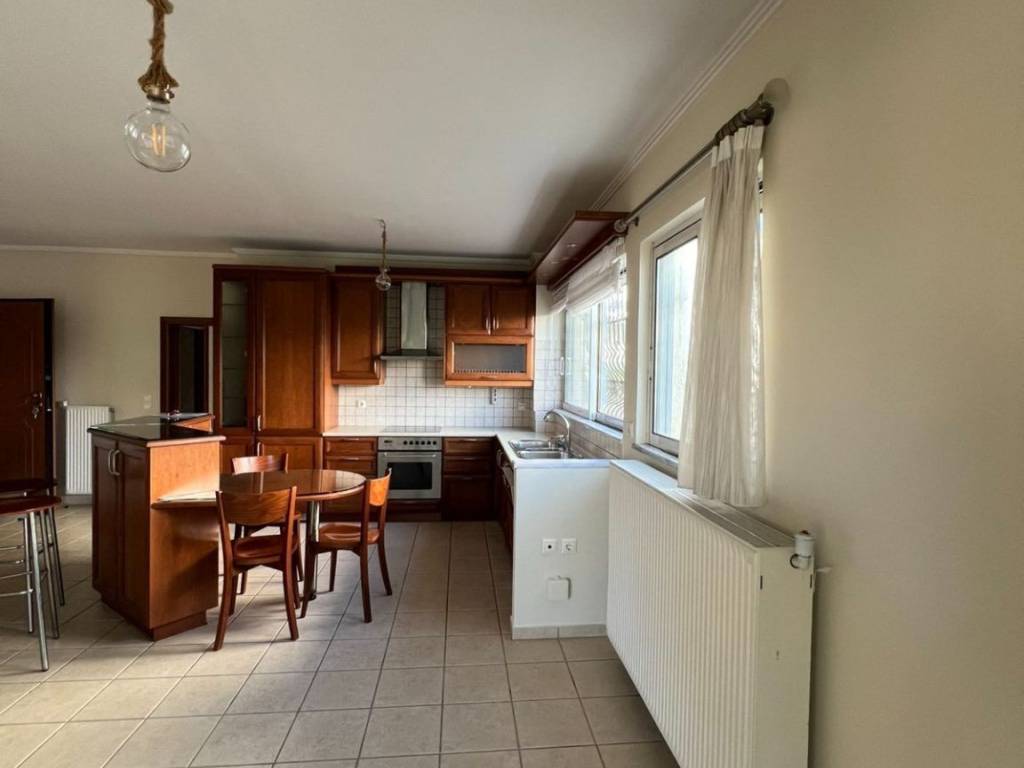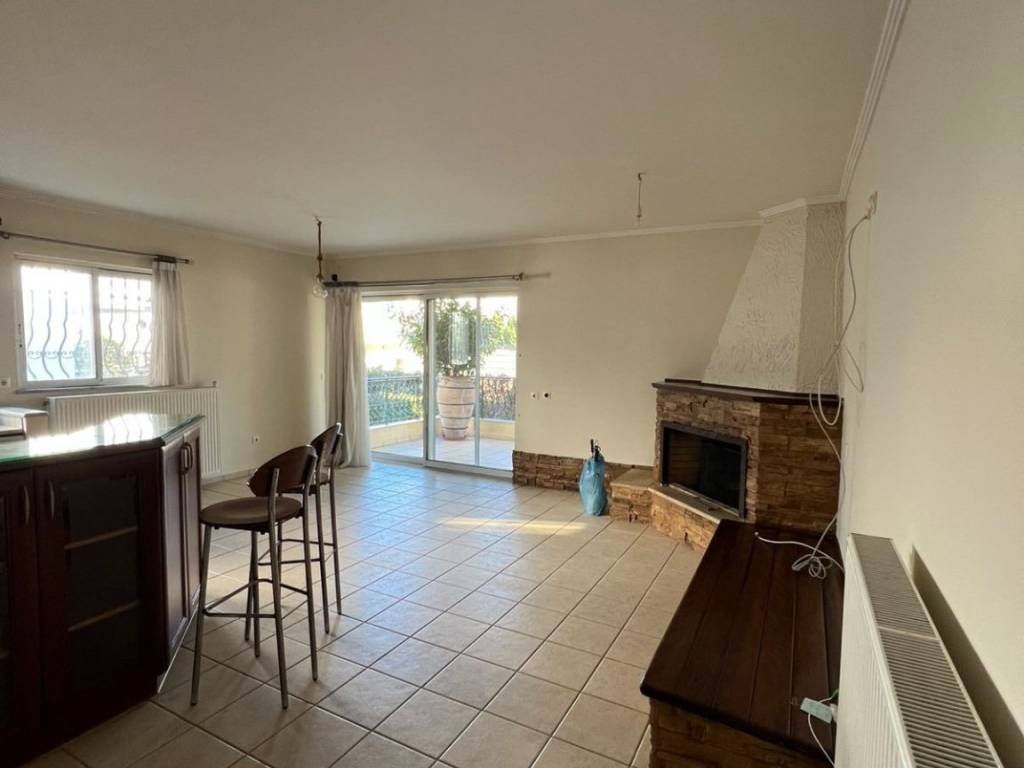 Υπερυψωμένο ισόγειο διαμέρισμα με τέσσερα υπνοδωμάτια, μπάνιο και WC. Διαθέτει αυτονομία θέρμανσης πετρελαίου, πόρτα ασφαλείας, κουφώματα αλουμινίου με σίτες και τέντες, καθώς και οπτική ίνα. Περιλαμβάνει εντοιχισμένες ηλεκτρικές συσκευές, όπως ψυγείο, πλυντήριο πιάτων, φούρνο και εστίες. Βρίσκεται πολύ κοντά στην αγορά, σε σχολεία, συγκοινωνίες και με άμεση πρόσβαση στην εθνική οδό.
