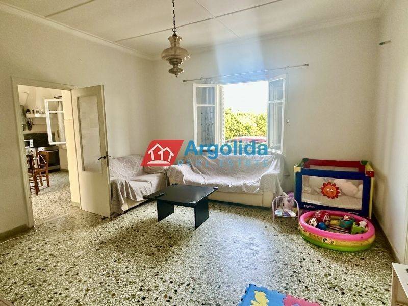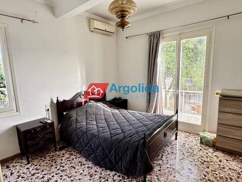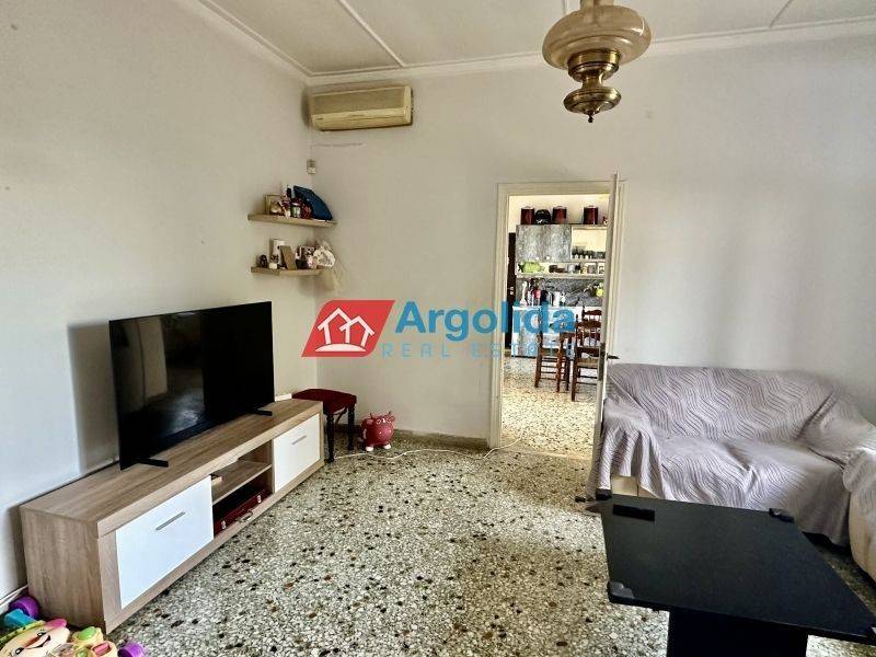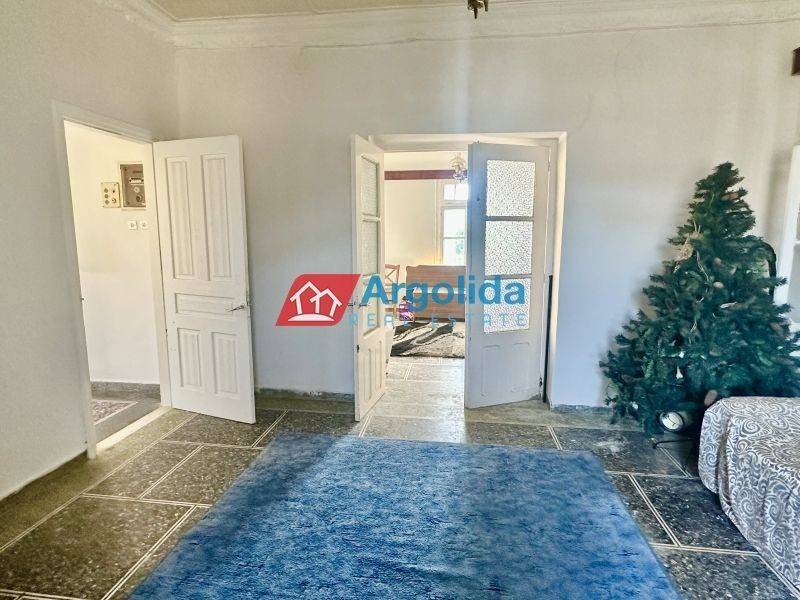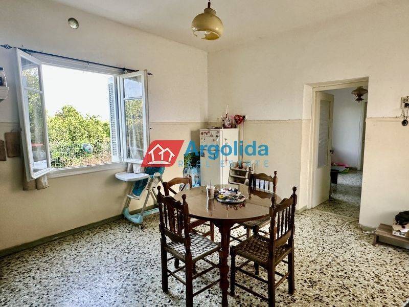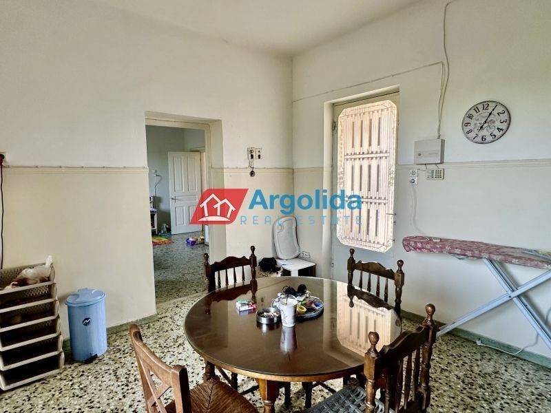 In Mycenae area at Neo Iraio, a fully furnished 140 sq.m. house is offered for sale on an 850 sq.m. plot, ideal for those seeking quality of life, peace and quiet, and a close connection with nature in an authentic and tranquil setting. The property is situated on a mezzanine level and comprises three comfortable bedrooms, a bright living room, a functional kitchen, and a bathroom, featuring mosaic flooring, wooden window frames, and a beautiful mountain view that enhances the sense of calm and relaxation. It is complemented by a 120 sq.m. storage building, a garden, and open spaces, while also offering modern comforts such as A/C, an alarm system, and a solar water heater, making it suitable for both permanent and holiday living. Built in 1973 and classified with an energy rating of F, the property represents an excellent investment opportunity with strong potential for renovation and value enhancement, and its location provides an ideal balance between nature and accessibility, being just 50 meters from the nearest village, 5 km from the city center, and 10 km from the sea, making it a perfect choice for buyers looking for serene living in the heart of the Greek countryside.