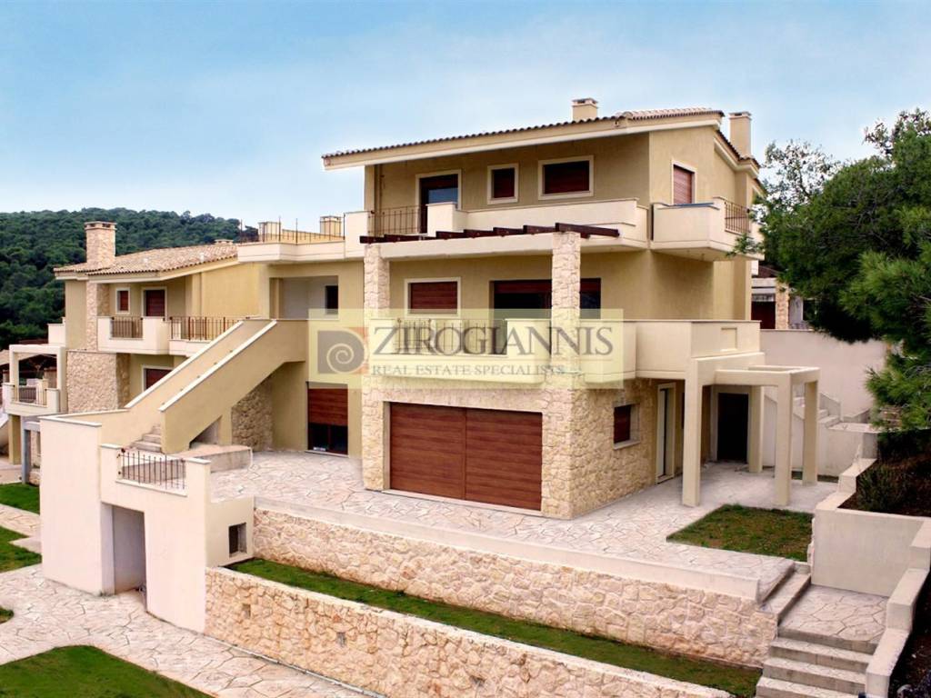 For sale close to Porto Rafti half finished/incomplete detached house 305 sq.m., on a plot of 2.500 sq.m., 3 levels (1st floor 74,56 sq.m, ground floor 100,54 sq.m. and semi-basement 129,81 sq.m.), 4 bedrooms (2 master), studio 48 sq.m, 4 bathrooms, 1 WC, 2 Κitchens, 1 fireplace, 4 parking spots in garage, building year: 2013. Other feautures: elevator, internal staircase, security door, storage room, fireplace, balconies, BBQ, luxury, airy, bright, swimming pool, large back yard (garden) 1.721 sq.m., mountain view, distance from: seaside (km): 2.3, airport 16 km. Zirogiannis Real Estate, Τel: 2106666690, www.zirogianni.gr
