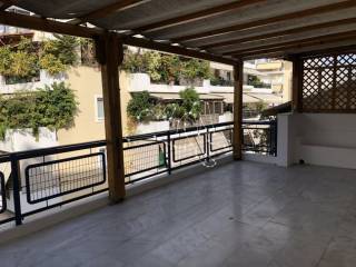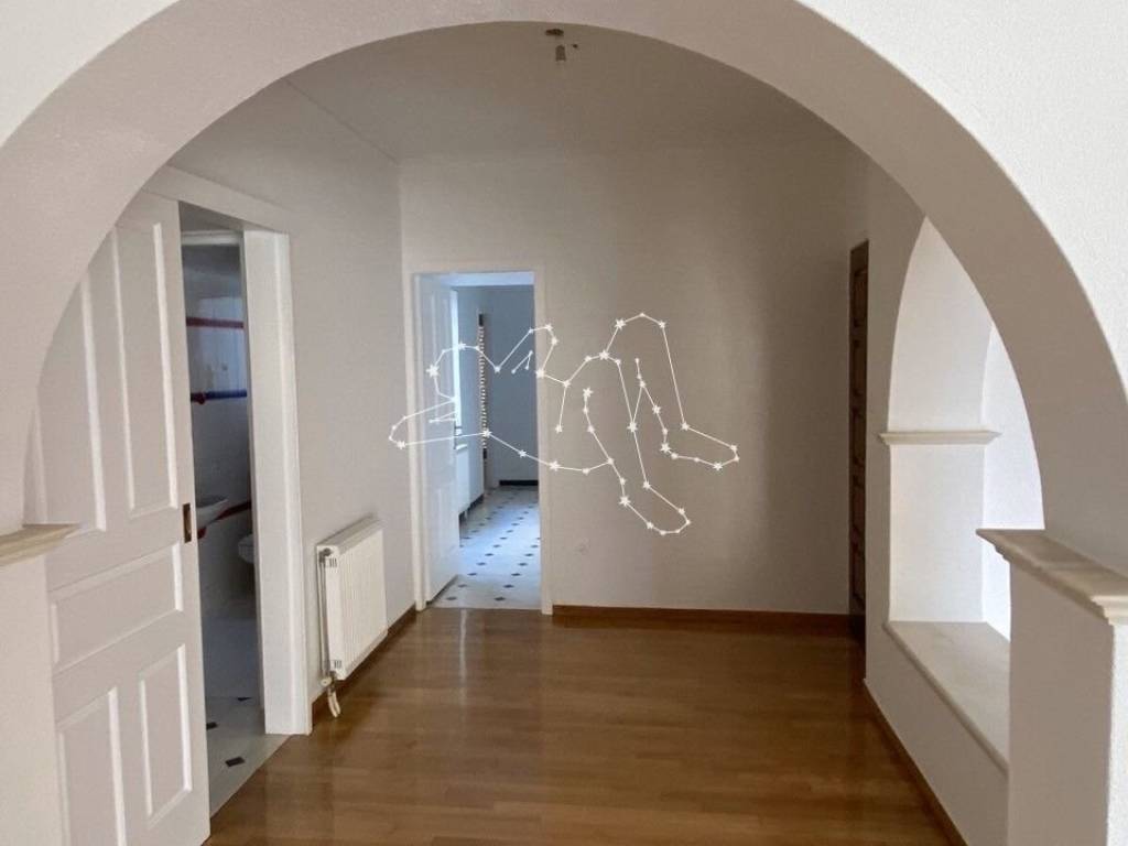 Floor apartment 130 sq.m., bright and airy, frontage, in the area "Freattida", on the 4th floor with elevator, built in 1985. It consists of a large living room with fireplace and access to a terrace overlooking the sea, separate kitchen, three bedrooms and two bathrooms. It has central heating with natural gas. It has aluminum frames and wood-tile floors. To the additional features of the property are added the closets and the fireplace. It has no storage room and parking space. It is located 100 meters from Marina Zea, close to a market and public transport.