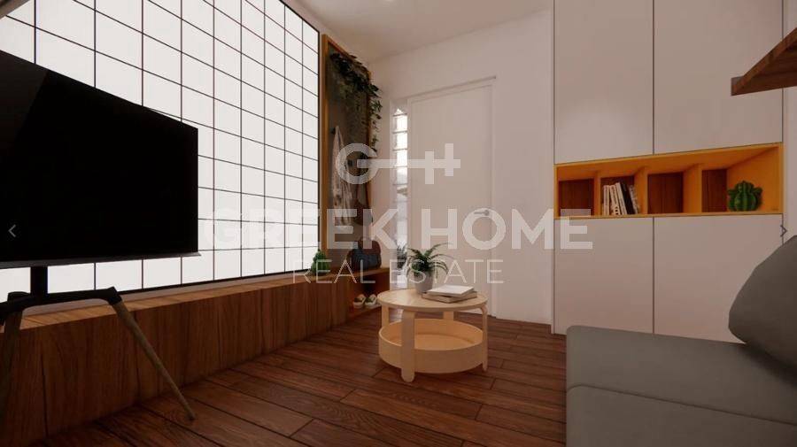 Agios Dimitrios (Attica - Southern Suburbs) - Apartment 35sqm partially furnished, bedroom, excellent condition, year built 1974, renovation year 2026, energy class B+, living room, hall, kitchen, bathroom, heating type: autonomous (heat pump), air condition, quiet, luminous, frontage, boiler, balconies, large balconies, garden, built in appliances, aluminum frames, double glazed windows, door screen, ceramic tiles floors, secure door, alarm, video doorbell, satellite, internet, pets allowed, investment property, short term lease, commercial use, close to metro/train (up to 500m).