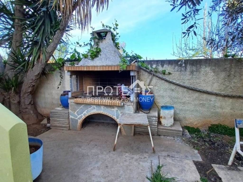 Property Code: 1-1008 - House FOR SALE in Rafina Center for €130.000 . This 80 sq. m. House is on the Ground floor and features 2 Bedrooms, Livingroom, Kitchen, bathroom and a WC. The property also boasts Heating system: Autonomous heating - Oil, tiled and wood floors, parking space, a storage unit 9 sq.m., garden, fireplace, BBQ. The building was constructed in 1982 Plot area: 350 s.q. . Building Energy Rating: D